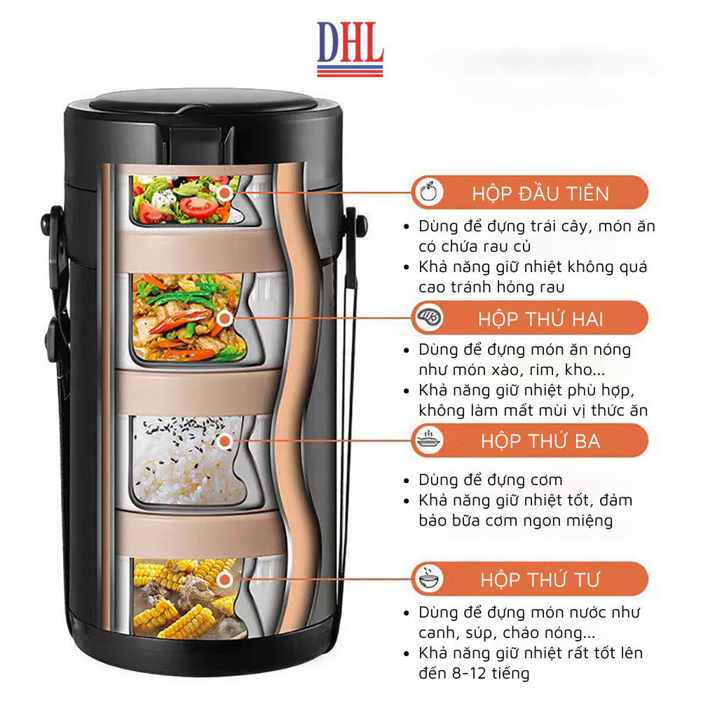- Cấu tạo 4 hộp giữ nhiệt độc lập