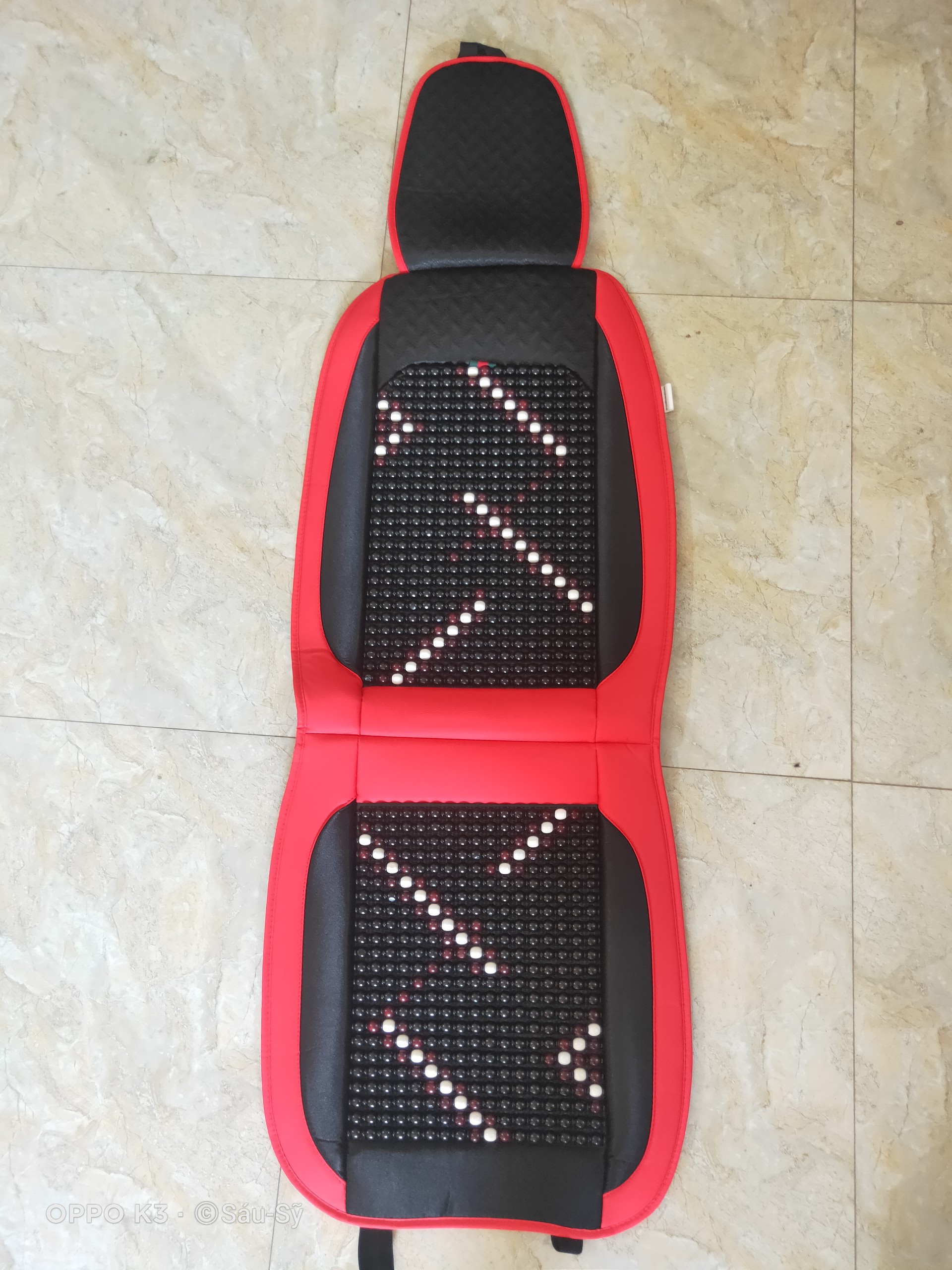Lót Ghế Ô Tô hạt Gỗ Đệm Nỉ Cao Cấp họa tiết hoa văn màu Đen đỏ