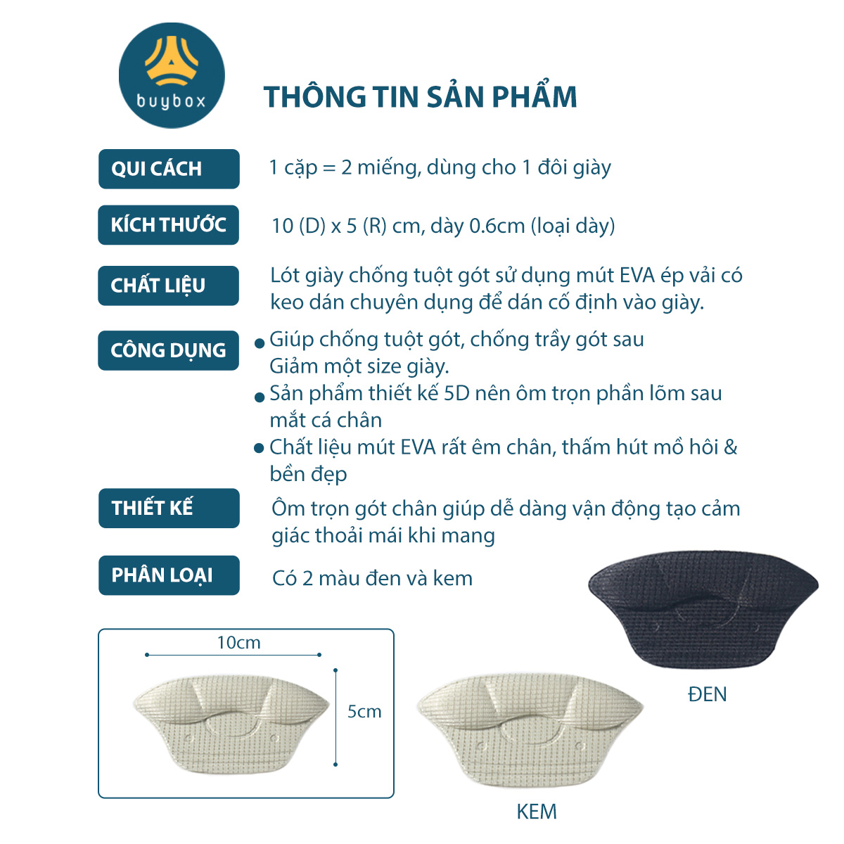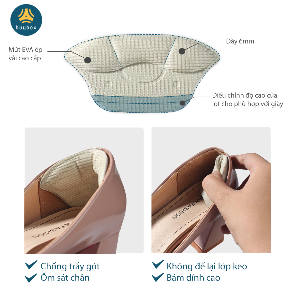 ✨Lót giày bảo vệ gót sau dày 6mm giảm size giày, chất liệu cao cấp giúp êm chân - buybox - BBPK230