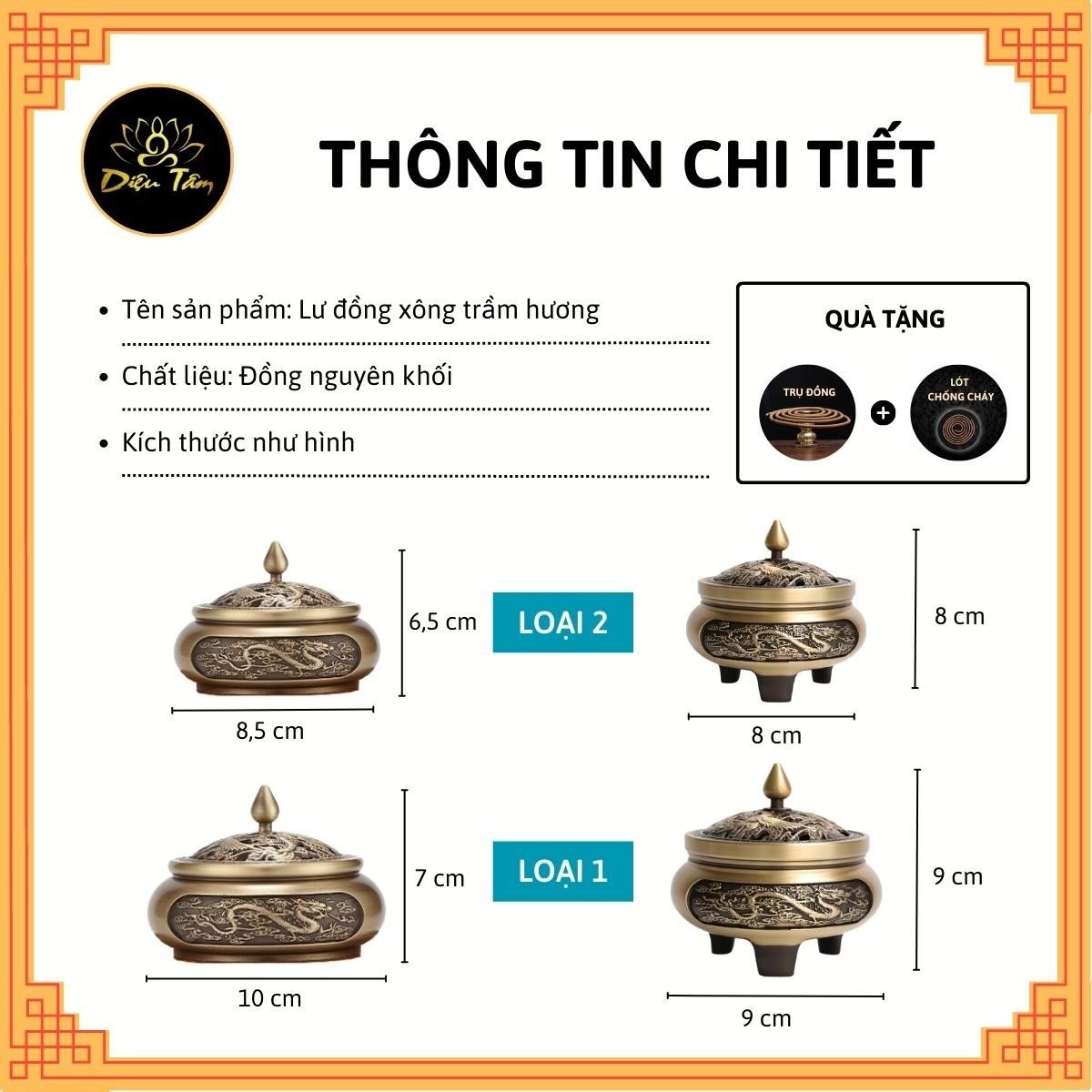 ✨Lư đồng lư xông trầm hương trầm nụ cao cấp thiết kế tinh xảo tặng kèm trụ và lót chống cháy shop Diệu Tâm
