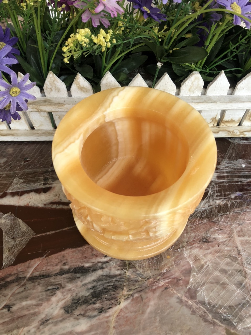 Kích thước: Cao 15cm; Đường kính 14cm Khối lượng: 3,5 kg Chất liệu: Đá ngọc hoàng long