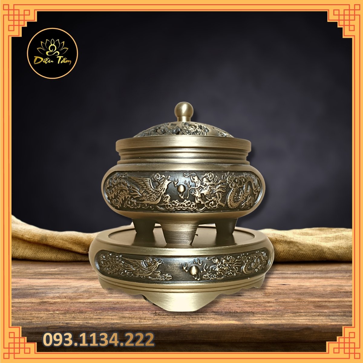 THÔNG TIN SẢN PHẨM Lư đồng lư xông trầm hương trầm nụ cao cấp thiết kế tinh xảo tặng kèm trụ và lót chống cháy shop Diệu Tâm -Chế tác: Thủ công -Chất liệu: Đồng