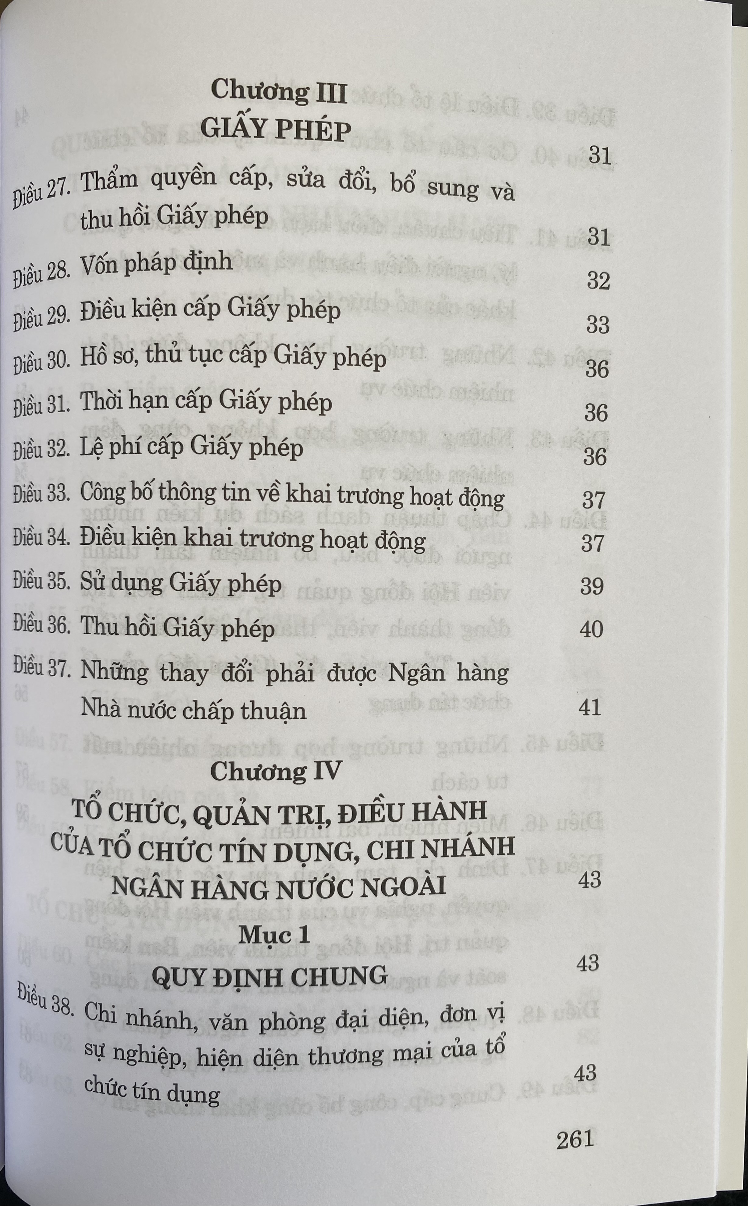 Ngày 18/01/2024 Quốc hội đã thông qua Luật Các tổ chức tín dụng số 32/2024/QH15 gồm XV Chương với 210 Điều. Luật Các tổ chức tín dụng 2024 có hiệu lực từ 01/7/2024. Bên cạnh hoàn