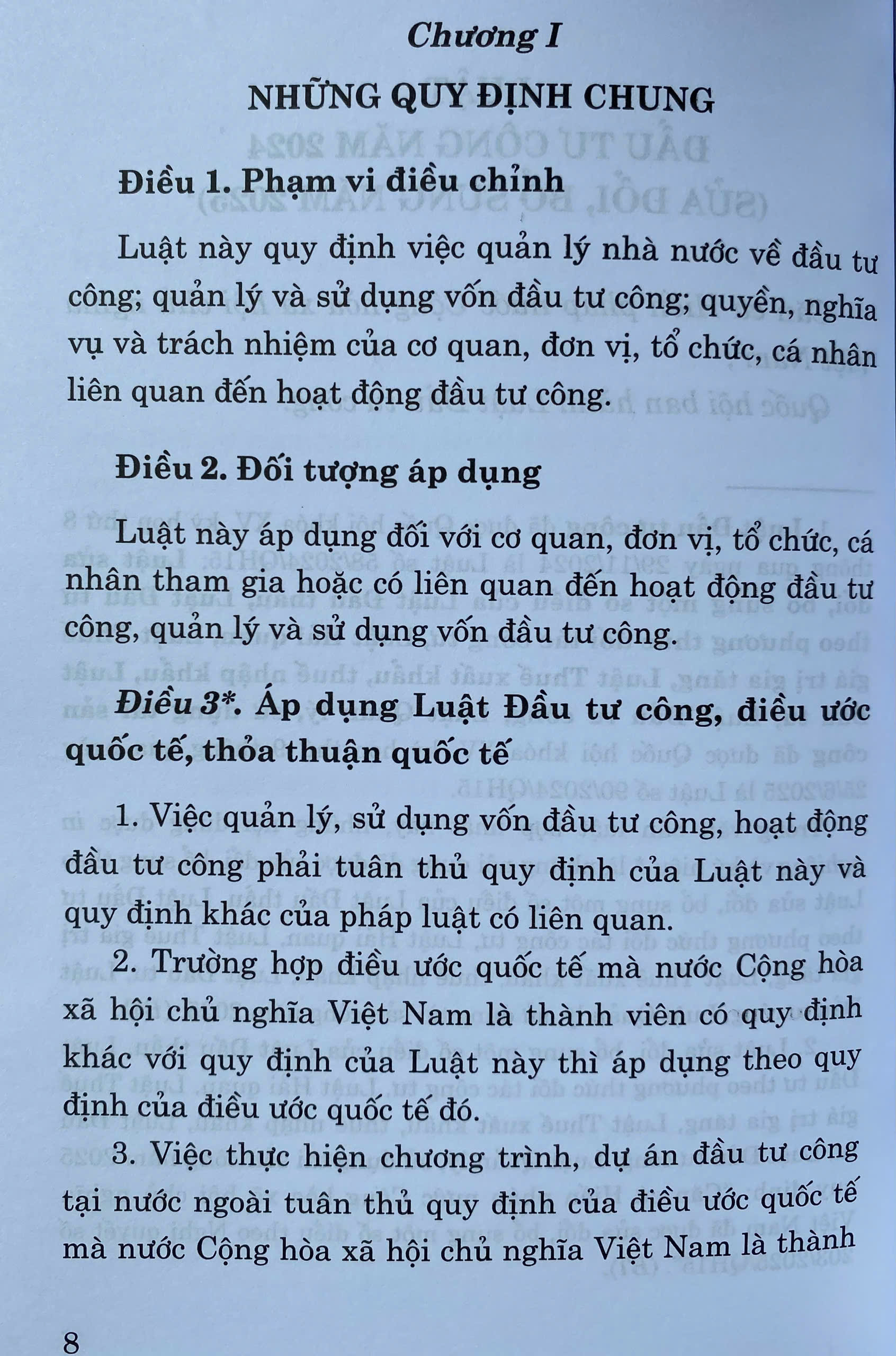 Luật Đầu tư công được Quốc hội khóa XV kỳ họp thứ 8 thông qua ngày 29/11/2024, có hiệu lực thi hành ngày 01/01/2025, thay thế Luật Đầu tư công năm 2019. Luật Đầu tư