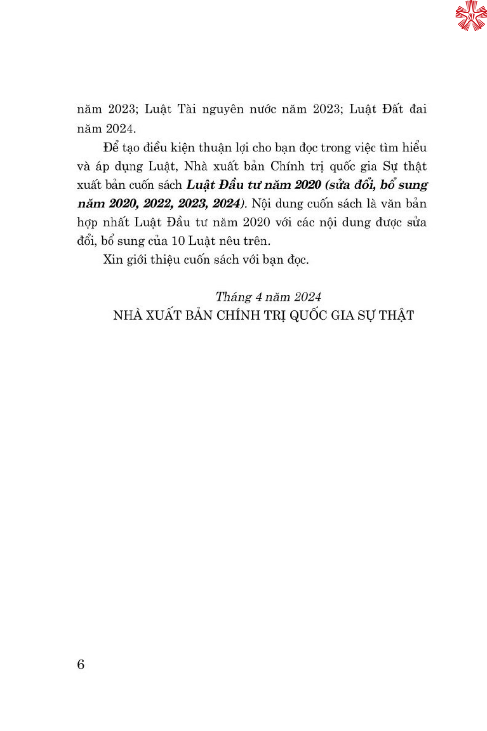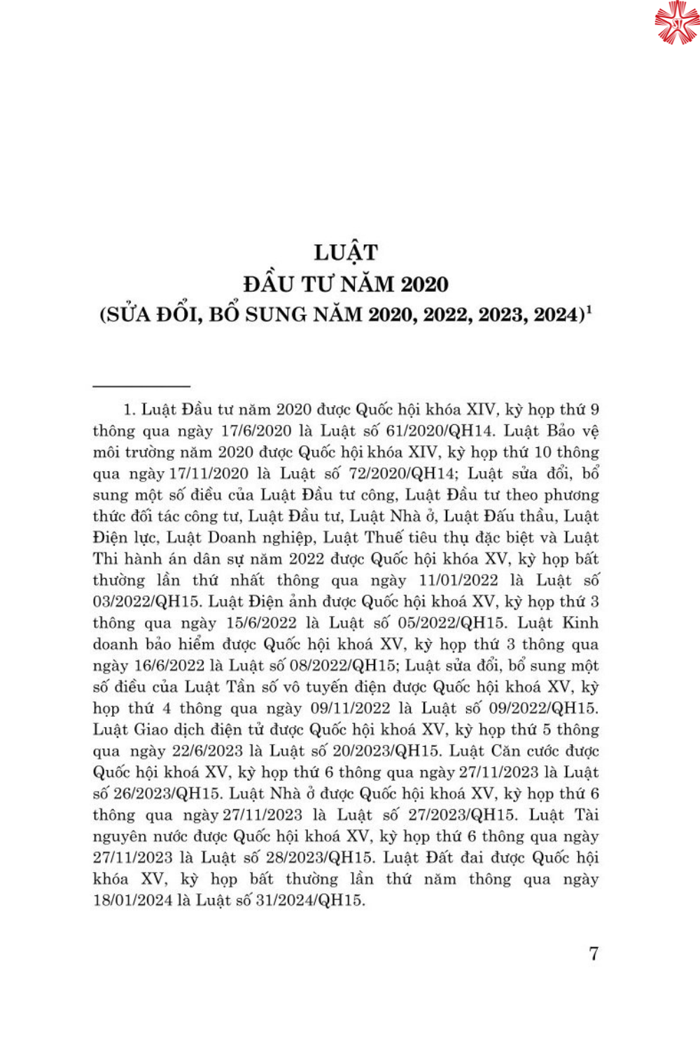 ✨Luật đầu tư năm 2020 (sửa đổi, bổ sung năm 2020, 2023, 2024) bản in 2024
