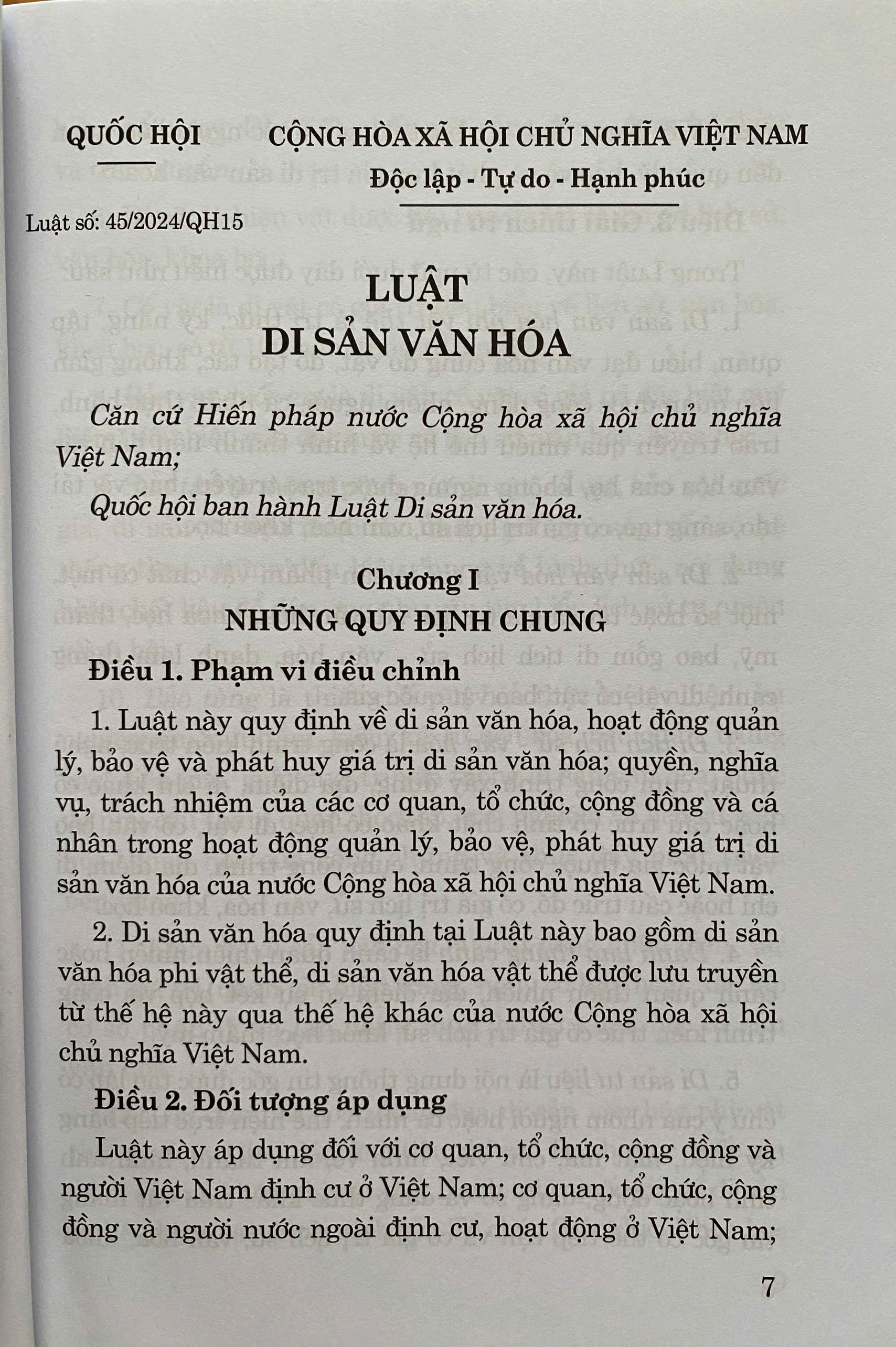 Mua tại TiktokLuật Di Sản Văn Hoá số 45/2024/ QH15 đã được Quốc Hội thông qua ngày 23 tháng 11 năm 2024. Luật gồm có 9 chương, 95 điều. Luật có hiệu lực áp dụng từ ngày 01 tháng 07 năm 2025.