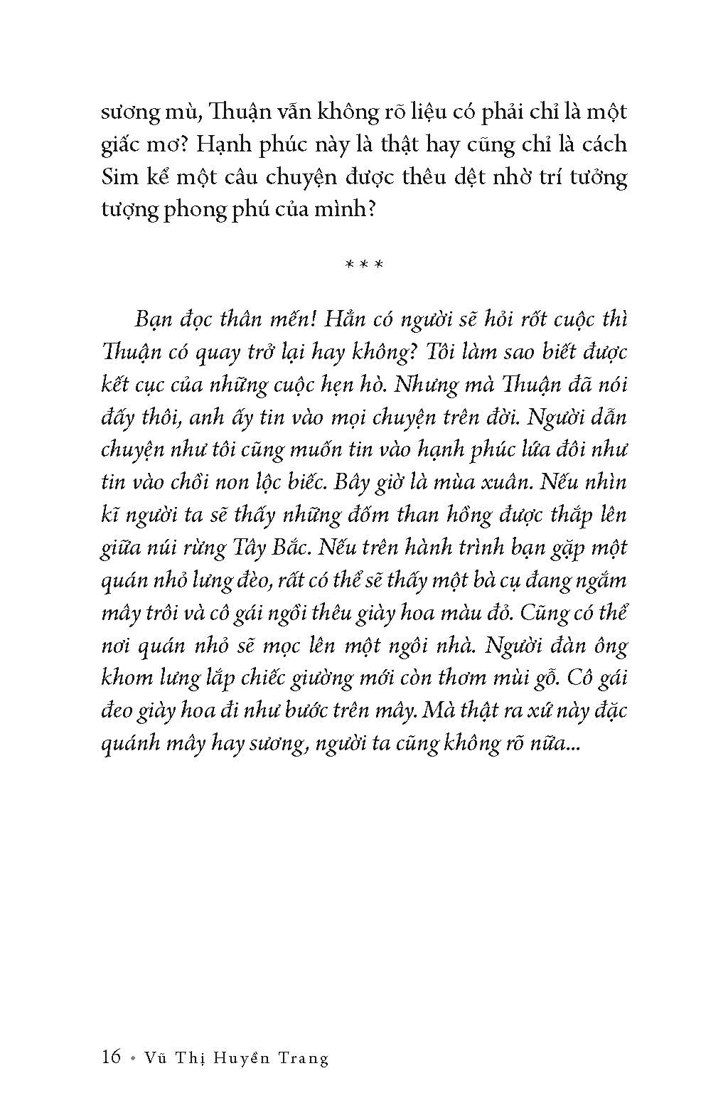 Một số trích đoạn: (1) – Nhịp tim của con chị đấy, chị nghe thấy chưa ạ? Lời nữ hộ sinh cắt ngang dòng suy nghĩ của Hằng. Hằng khẽ gật đầu. Ừ, thiên thần bé