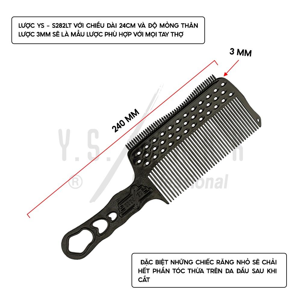 - Lược YS - S282LT với chiều dài 24cm và độ mỏng thân lược 3mm sẽ là mẫu lược phù hợp với mọi tay thợ. Đặc biệt những chiếc răng nhỏ sẽ chải hết phần tóc thừa trên da đầu sau khi cắt