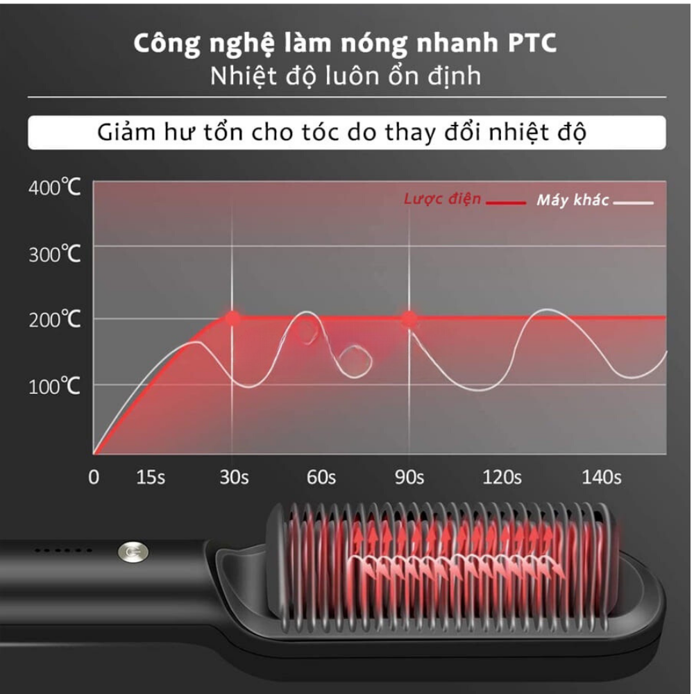 • Đối với chất tóc mỏng, yếu sau khi lược nóng nên giảm mức nhiệt độ xuống còn 3-4 đèn sáng để giảm tối đa gây khô và hỏng tóc.