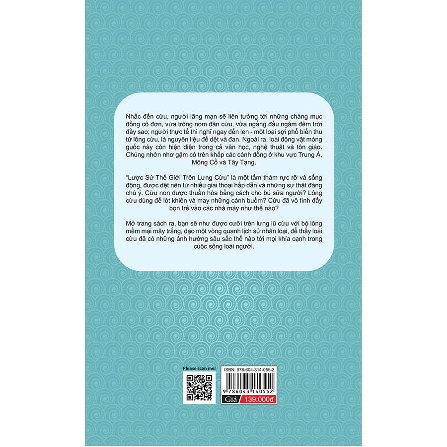 TÓM TẮT NỘI DUNG Nhắc đến cừu, người lãng mạn sẽ liên tưởng tới những chàng mục đồng cô đơn vừa trông nom đàn cừu vừa ngẩng đầu lên để ngắm bầu trời đêm đầy sao trong một ngày mùa hạ. Còn ngược lại, người thực tế thì sẽ nghĩ ngay đến len – một loại sợi phổ biến thu từ long cừu, là nguyên liệu để dệt và đan. Ngoài ra, loài động vật móng guốc này còn hiện diện trong các lĩnh vực văn học, nghệ thuật và tôn giáo. “Lược sử Thế giới trên lung cừu” là một tấm thảm rực rỡ và sống động, được dệt nên từ nhiều giai thoại hấp dẫn và những sự thật đáng chú ý. Cừu non được thuần hóa bằng cách cho bú sữa người? Lông cừu dùng để lót khiên và may những cánh buồm? Cừu đã vô tình đẩy bọn trẻ vào trong các nhà máy như thế nào? Mở trang sách ra, bạn sẽ như được cưỡi trên lung lũ cừu với bộ lông mềm mại mây trắng, dạo một vòng quanh lịch sử nhân loại, để thấy loài cừu đã có những ảnh hưởng sâu sắc thế nào đế mọi khía cạnh trong cuộc sống nhân loại từ trước tới nay.