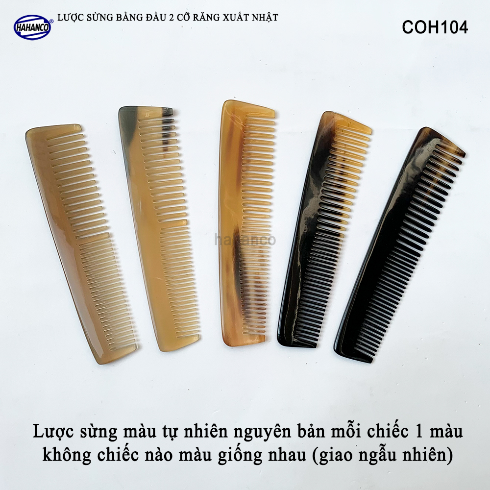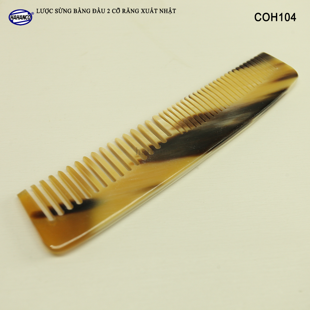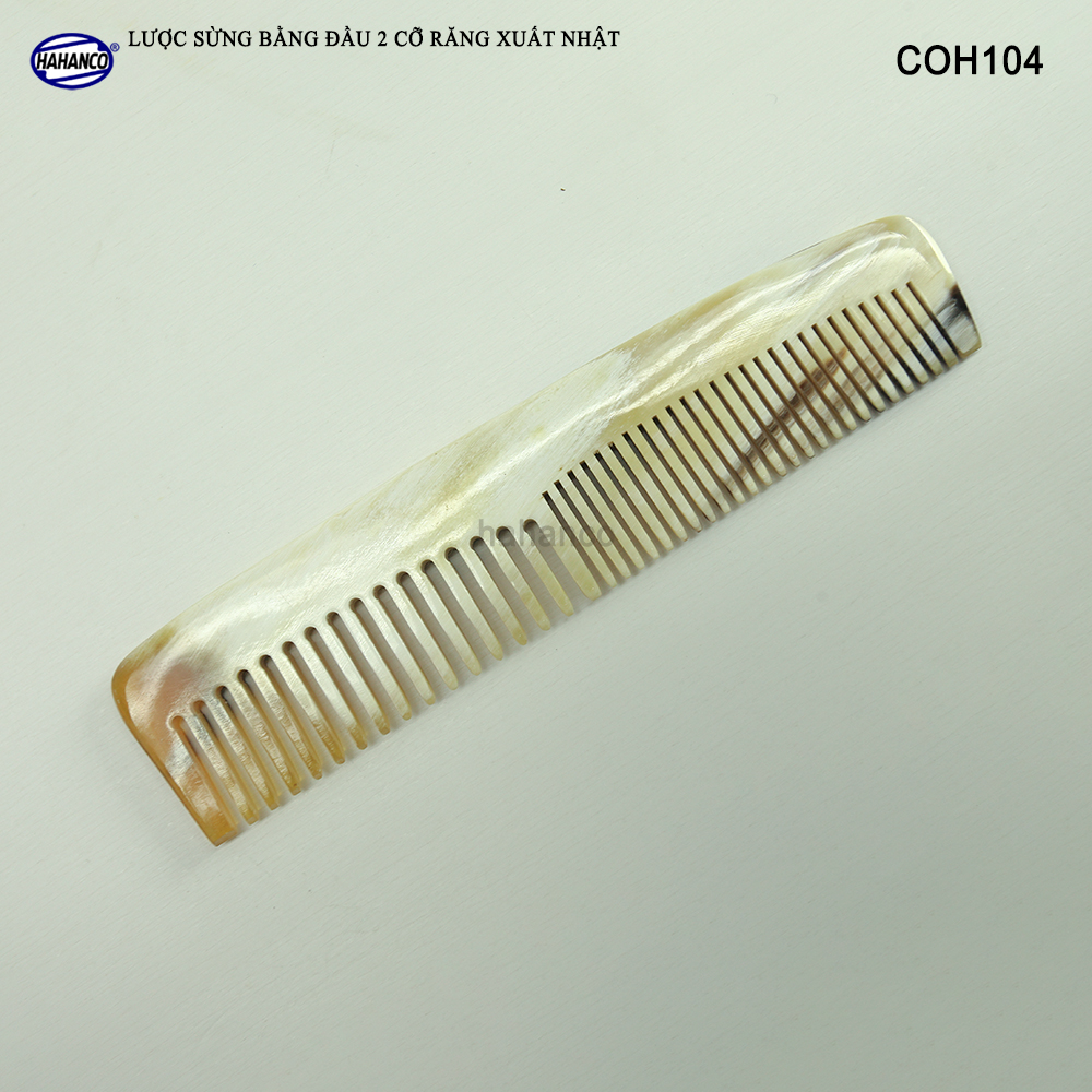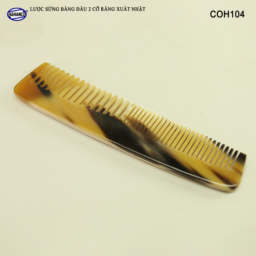 Mua tại TiktokLược sừng xuất khẩu sang thị trường Nhật Bản - EU- US. COH104 là mẫu lược bằng đầu, có 2 loại răng khác nhau để thuận tiện cho việc chải nhiều loại tóc, đây là mẫu lược thiết kế có kiểu dáng nhẵn bóng trơn chu, Với vẻ đẹp và tính ưu việt đó, Mẫu lược này có thể bỏ vào túi, bóp mang theo người. Những chiếc răng lược được các bàn tay khéo léo mài dũa từng chiếc một cẩn thận để đạt được độ nhẵn bóng, khi chải tóc sẽ không làm gãy và rụng tóc. Mô tả sản phẩm:
