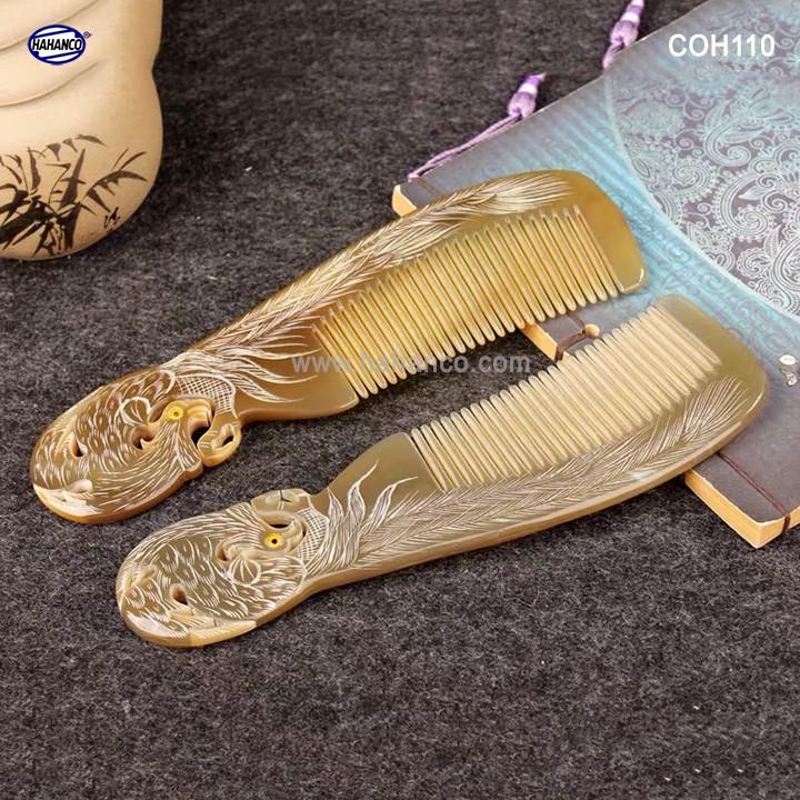 Đây là mẫu lược VIP được các nghệ nhân làm thủ công tạo hình con Phượng cuốn, được cắt khía vào thân lược kết hợp với những đường tỉa tách họa tiết sống động trên thân lược, chiếc lược dày dặn và làm bóng bảy rất kỹ.