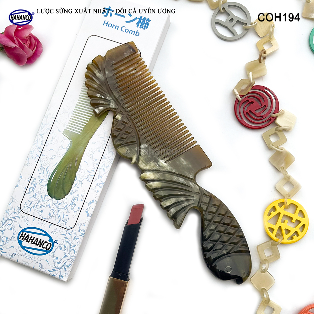 Lược Sừng Đôi Cá Uyên Ương HAHANCO (Size: XL-20cm) Mẫu Cao Cấp Siêu Đẹp - COH194