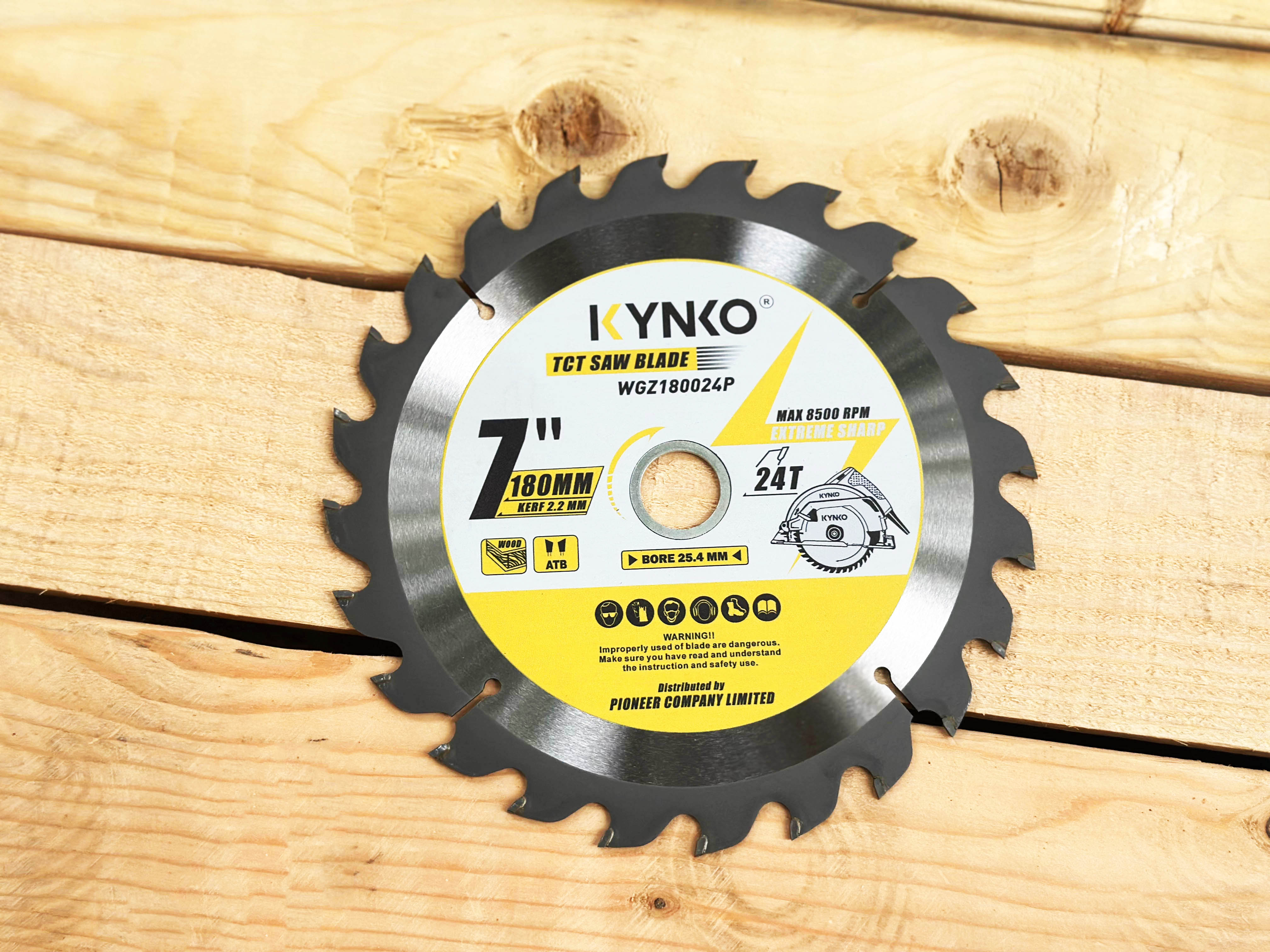 THIẾT KẾ - MÀU SĂC HÌNH IN TRÊN LƯỠI CÓ THỂ THAY ĐỔI DO THAY ĐỔI THIẾT KẾ - CHẤT LƯỢNG KHÔNG THAY ĐỔI LƯỠI CƯA GỖ TCT 24 RĂNG Ø 180MM KYNKO WGZ180024P KYNKO CAM KẾT: