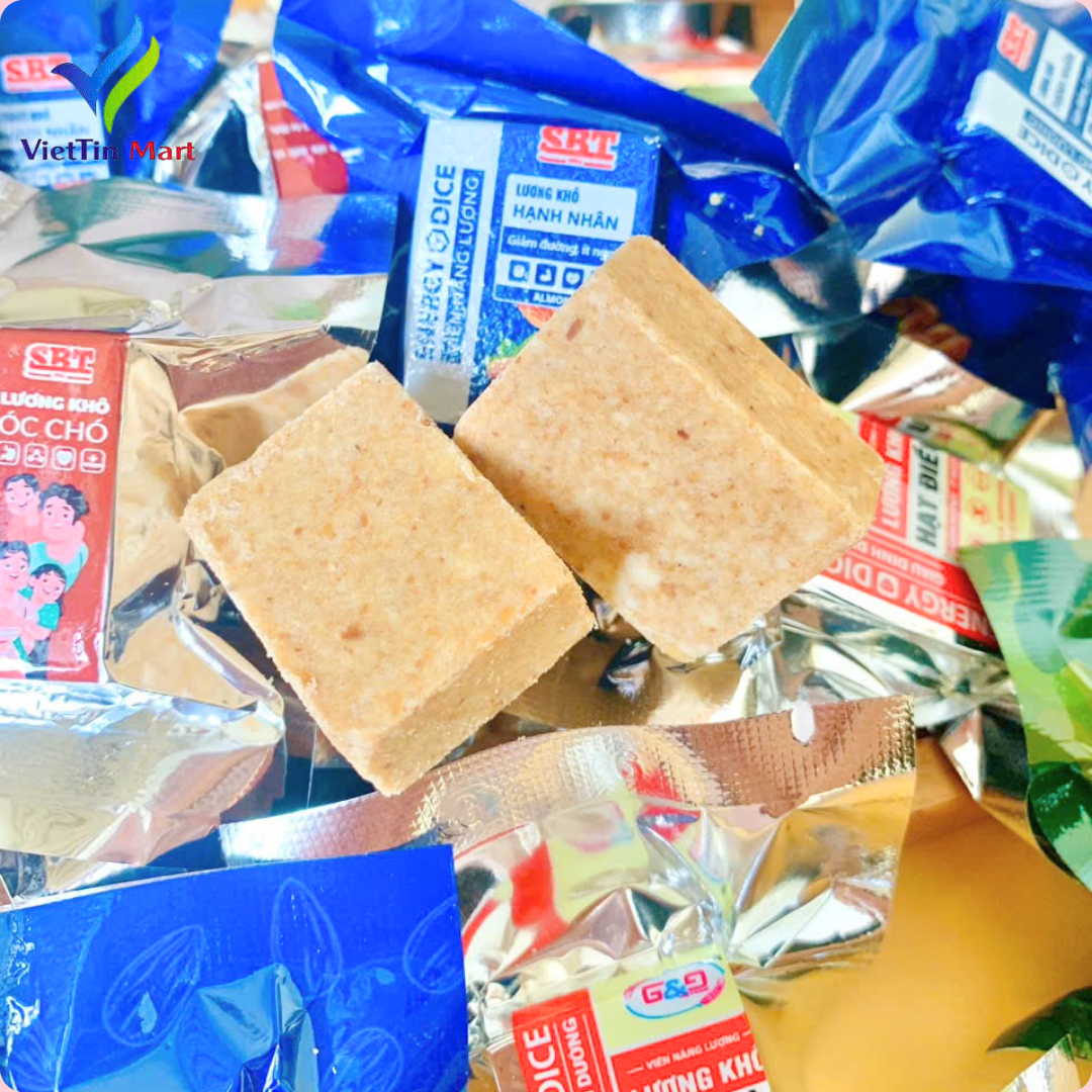 GIỚI THIỆU VỀ VIETTINMART. Quý khách hàng thân mến, VIETTINMART ra đời với mong muốn mang lại nguồn thực phẩm chất lượng tốt nhất cho người tiêu dùng. Chúng tôi tìm kiếm nguồn nguyên liệu tốt nhất, xuất xứ từ đúng những vùng trồng đặc hữu, được canh tác và thu hoạch đúng cách, đúng mùa vụ. VIETTINMART luôn nổ lực không ngừng với mong muốn mang giá trị về sức khỏe tới cộng động bằng sự đảm bảo chất lượng và đa dạng sản phẩm mỗi ngày và mỗi một cảm nhận của khách hàng về sản phẩm của VIETTINMART đều được chúng tôi ghi nhận, tiếp thu và phát triển hơn mỗi ngày, bởi vì SỨC KHỎE CỦA KHÁCH HÀNG LÀ QUAN TÂM HÀNG ĐẦU CỦA VIETTINMART ! THÔNG TIN SẢN PHẨM Tên sản phẩm: Lương Khô Dinh Dưỡng Mix 13 Vị 500g Thương hiệu: SBT Thành phần: bột mỳ, đường kính, bơ, dầu thực vậy, sữa bột, muối,... 13 vị mix : hạt điều, hạnh nhân, óc chó, ruốc thịt, việt quất, matcha, kiwi, hoa quả Tổng Hợp, mè đen, yến mạch, trần bì, socola chip, gạo lứt. Quy cách đóng gói: túi  Khối lượng: 500g Ngày Sản Xuất: xem trên bao bì Hạn sử dụng: 12 tháng Hướng dẫn bảo quản: Nơi khô ráo, thoáng mát. Tránh ánh nắng mặt trời trực tiếp Hướng dẫn sử dụng: Sử dụng trực tiếp khi bóc sản phảm Thông tin cảnh báo an toàn, vệ sinh: Không sử dụng sản phẩm khi có hiện tượng nấm mốc, mùi vị lạ Xuất xứ : Việt Nam Lương khô có thể được bảo quản trong thời gian dài mà không cần điều kiện đặc biệt, rất tiện lợi cho việc mang theo trong các chuyến đi xa, dã ngoại.   ĐỔI TRẢ: Đổi trả miễn phí trong vòng 15 ngày khi phát hiện lỗi từ nhà sản xuất.