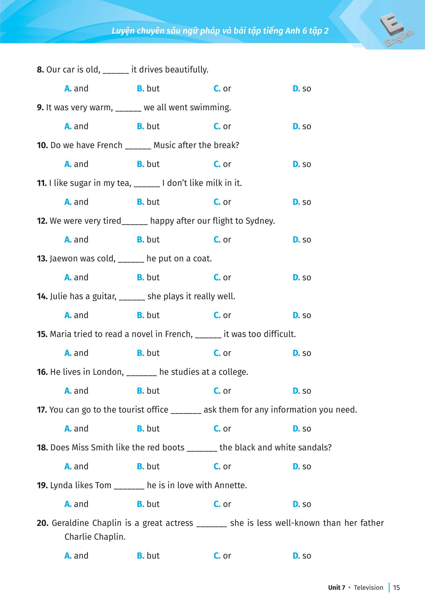 Luyện chuyên sâu Ngữ pháp và Bài tập tiếng Anh phù hợp với các em từ lớp 6 tới lớp 9. Mỗi cuốn sách gồm các bài học với Từ vựng - Ngữ pháp -