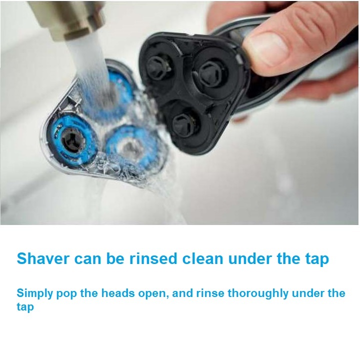 • 3 đầu cạo thiết kế lượn tròn linh động, giúp người dùng cạo sát rất êm ái mà không cắt xước vào da.