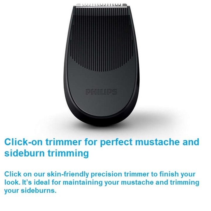 • Đầu tỉa dễ lắp ráp giúp tỉa ria mép và tóc mai hoàn hảo. Dùng đầu tỉa chính xác thân thiện với làn da để hoàn tất diện mạo của bạn. Đây là phụ kiện lý tưởng để bảo vệ bộ ria mép và cạo tóc mai đẹp. Thời gian sử dụng không dây 60 phút