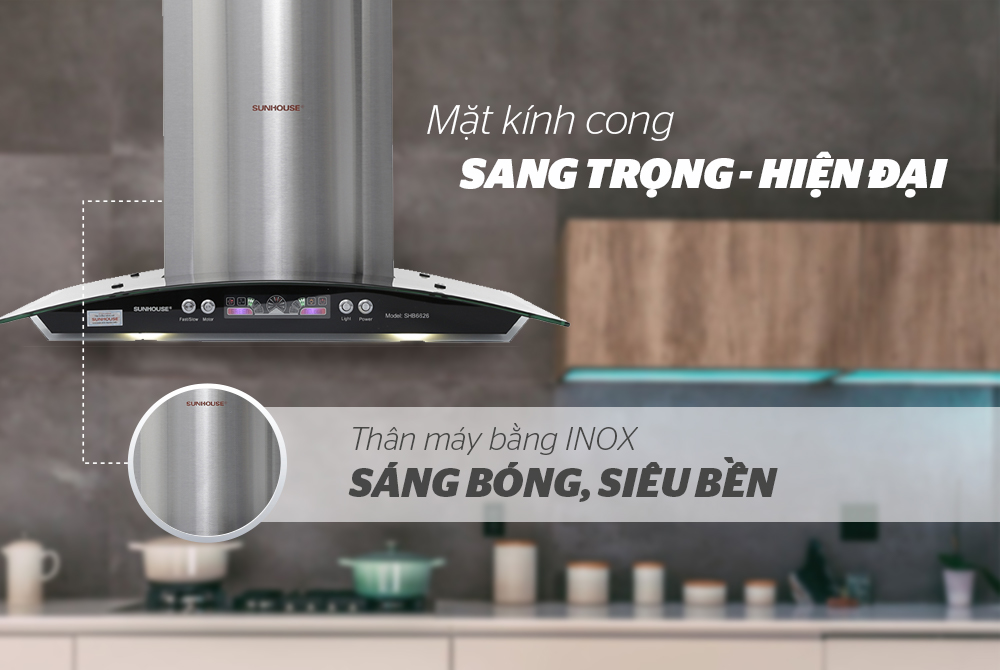 Review máy hút mùi kính cong SUNHOUSE SHB6626