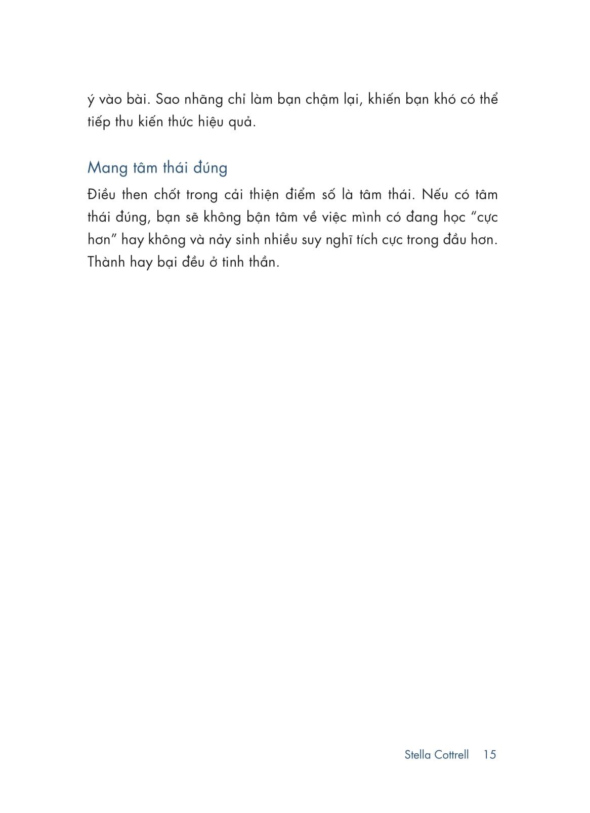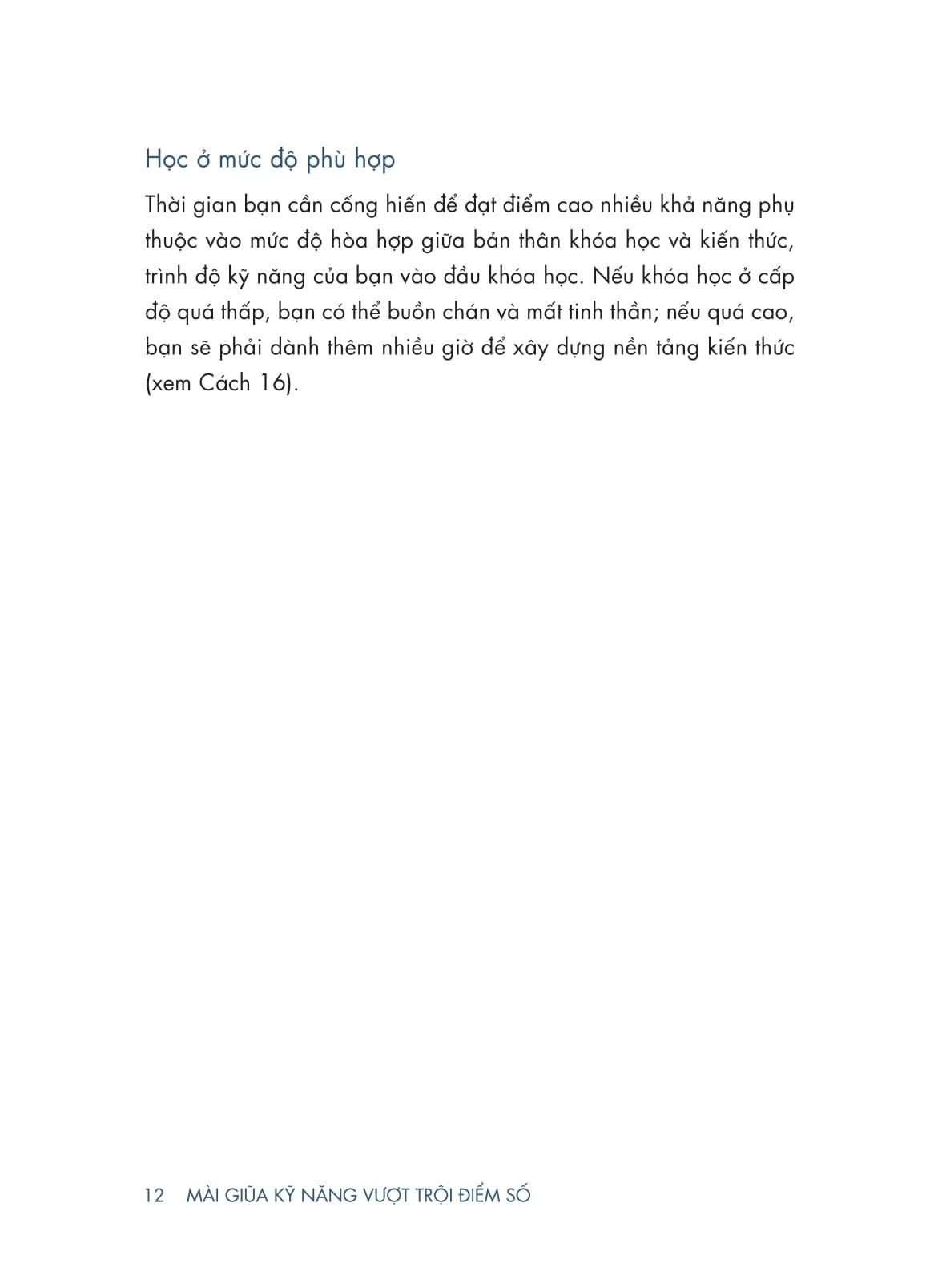 MÀI GIŨA KỸ NĂNG – VƯỢT TRỘI ĐIỂM SỐ với 50 mẹo nhỏ linh hoạt mà hữu ích cần có cho các bạn học sinh/sinh viên với các chỉ dẫn chi tiết: tự lên lộ trình học tập cho riêng bản thân; kiểm soát thời gian trong việc ôn tập và các kỳ thi; tinh chỉnh bài làm để đạt thêm điểm cộng; chọn lọc kiến thức một cách chủ động và bồi dưỡng sức khỏe tinh thần. Đây cũng là cuốn sách thứ 3 trong bộ Cẩm nang sinh viên, được viết bởi Stella Cottrell – chuyên gia giáo dục và hướng nghiệp người Anh, tác giả của Lộ trình bạn đi Tương lai bạn chọn và Tháo gỡ căng thẳng Mở lối tiềm năng – những cuốn sách hữu ích nổi tiếng với các bạn trẻ.