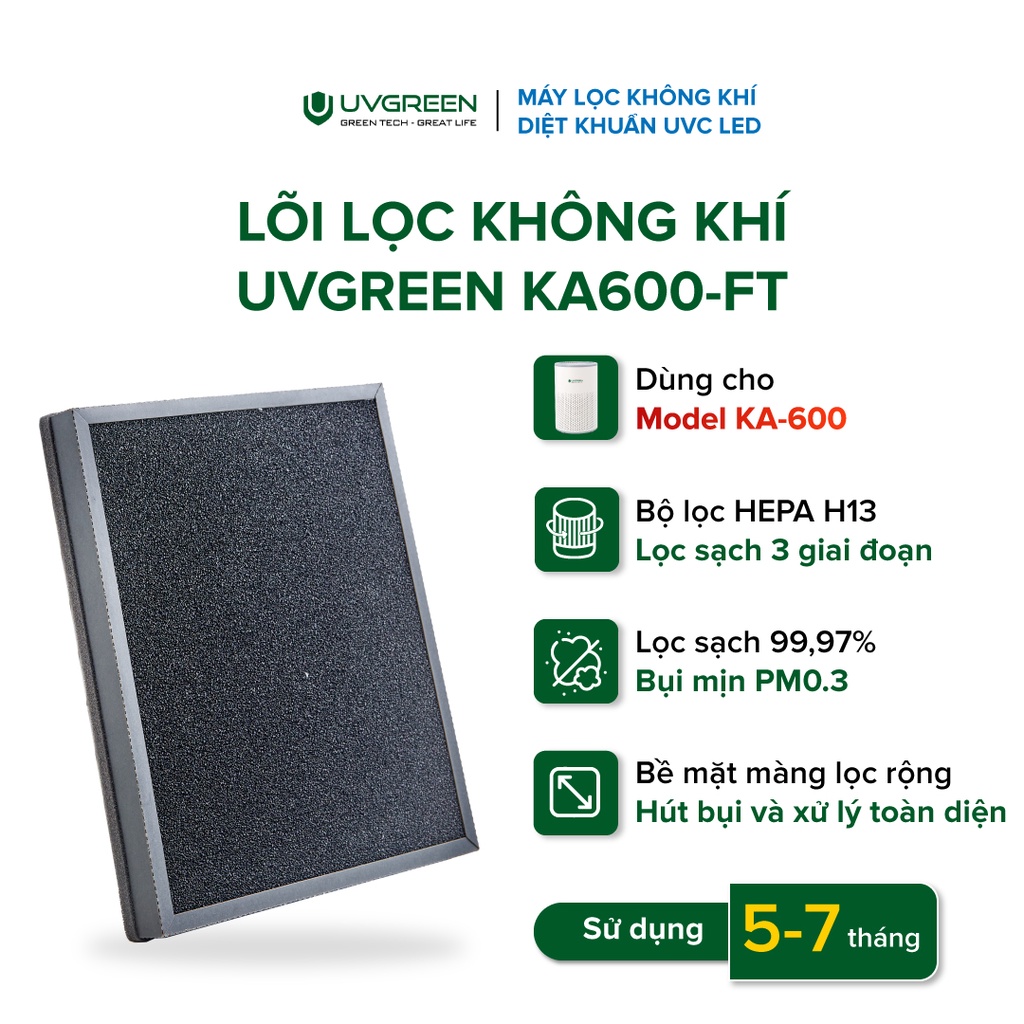Màng Lọc (Lõi Lọc) HEPA H13 Diệt Khuẩn Cho Máy Lọc Không Khí UVGREEN KA600 FT - Bộ Lọc 3 Lớp, Cấp Lọc Than Hoạt Tính Lọc Sạch 99,97% Bụi Mịn