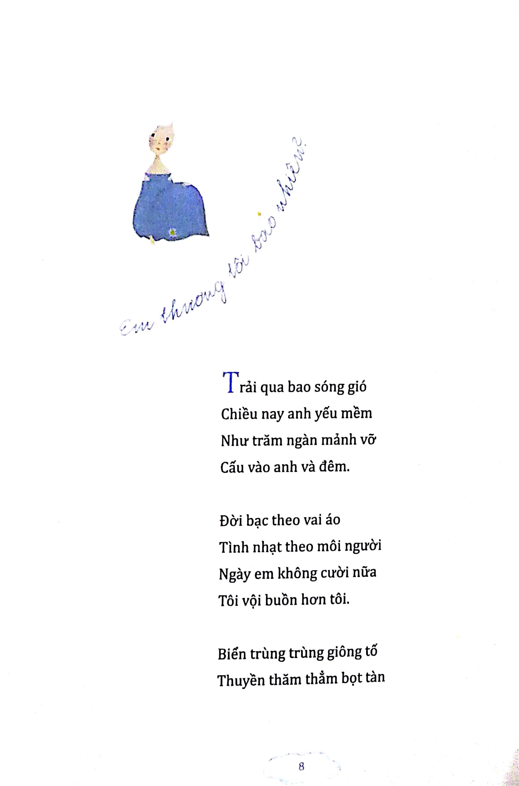 Phố viết thơ từ những câu chuyện của những người xung quanh cô vì thế tình yêu trong thơ Phố cũng chân phương, ngọt ngào, tha thiết dốc hết gan ruột như bất kỳ người phụ nữ nào trên cõi đời này. Mang san hà đổi lấy lấy duy nhất một người thương, nhìn tiêu đề, có người sẽ bảo sao giống Mỵ Châu, tình yêu mù quáng để trên đầu vậy, nhưng không, phụ nữ là vậy, đôi khi chỉ cần một người quan tâm mình, yêu thương mình là đủ đổi hết cả san hà, và với người phụ nữ trong tình yêu, luôn si mê đến khờ dại như vậy đó?