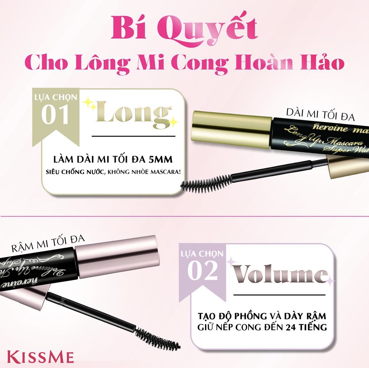 Mascara Làm Tơi Mi Không Trôi Kissme Heroine Make (1.8G) Thông tin sản phẩm: Số Lô: In trên sản phẩm Xuất Xứ: Nhật Bản Khối lượng tịnh: 1.8g HSD: 5 năm kể từ ngày