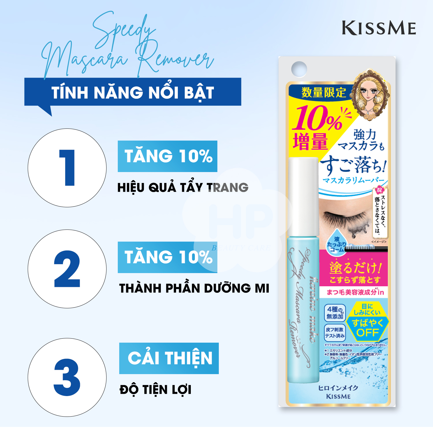 Mascara Tẩy Trang Mắt Kissme Heroine Make (7.3mL) Xuất xứ: Nhật Bản Thương hiệu: Kissme Mã vạch: 4901433040082 HSD: 5 năm kể từ NSX Dung dịch tẩy trang mi sẽ hòa tan ngay lập bởi
