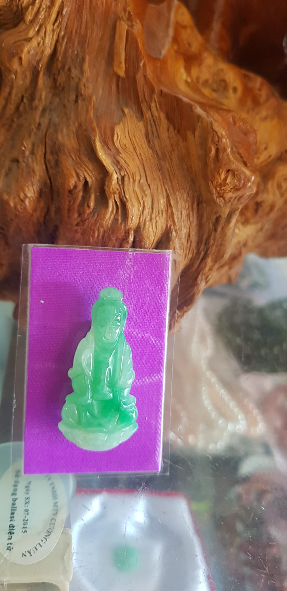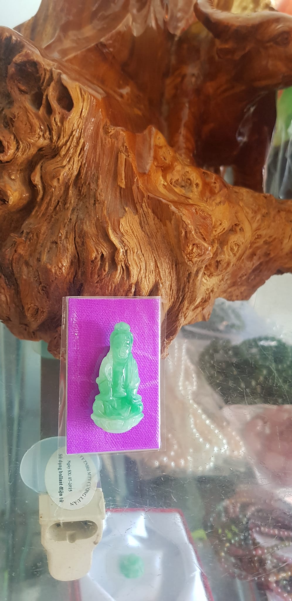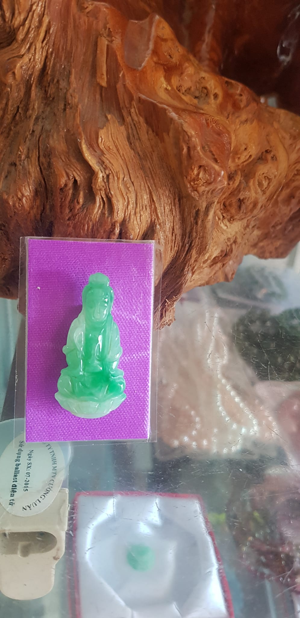 Mặt dây chuyền Nữ Phật Quan Âm Ngồi đẹp đá ngọc cẩm thạch tự nhiên đẹp size nhỏ Nữ size nhỏ Cao 39mm x N18mm x S4mm Màu xanh lý trắng mượt mà bóng đẹp các Chị về bọc vàng đeo đẹp ạ