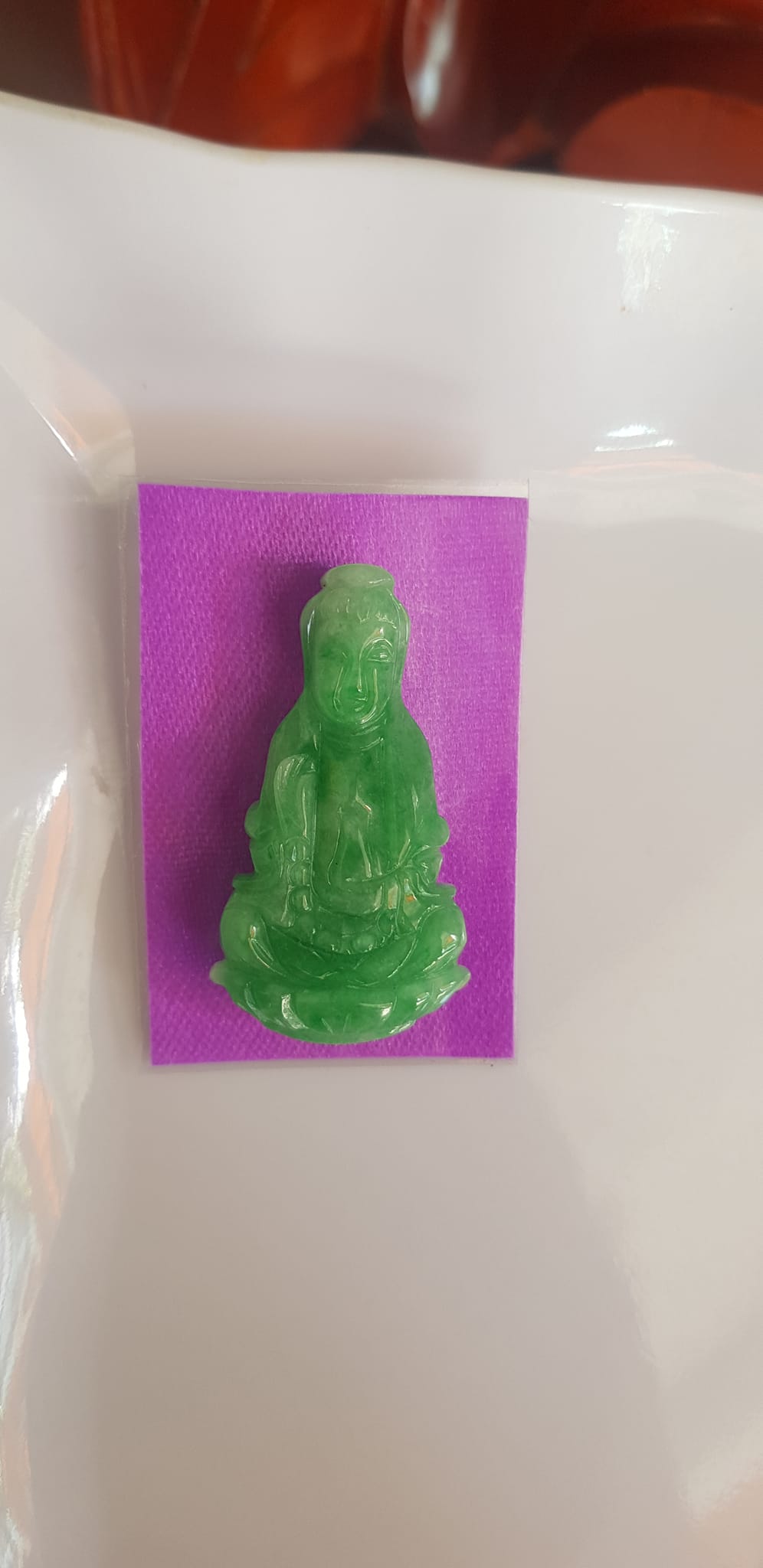 Mặt dây chuyền Nữ Phật Quan Âm Ngồi đẹp đá ngọc cẩm thạch tự nhiên đẹp Size vừa nhỏ Cao 40mm x N20mm x S6mm Màu xanh lý đều bóng đẹp các Chị về bọc