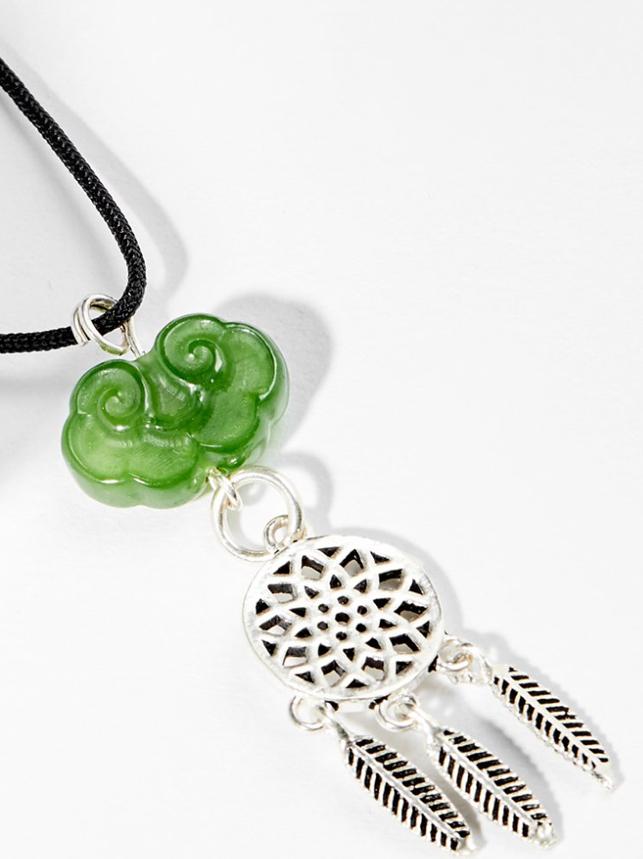 Mặt Dây Chuyền Phong Thủy Đá Ngọc Bích Như Ý Phối Charm Dream Catcher Mệnh Mộc, Hỏa