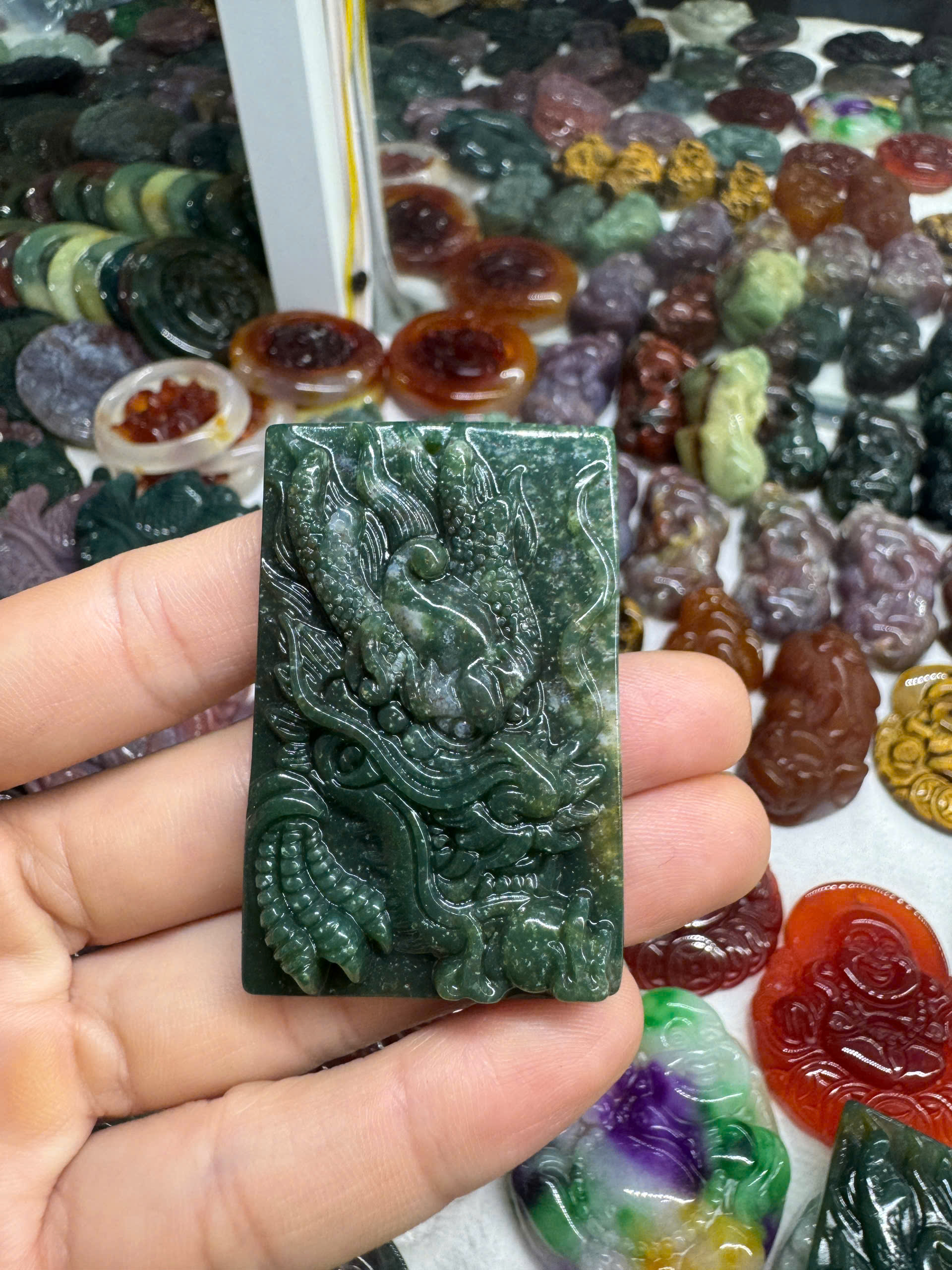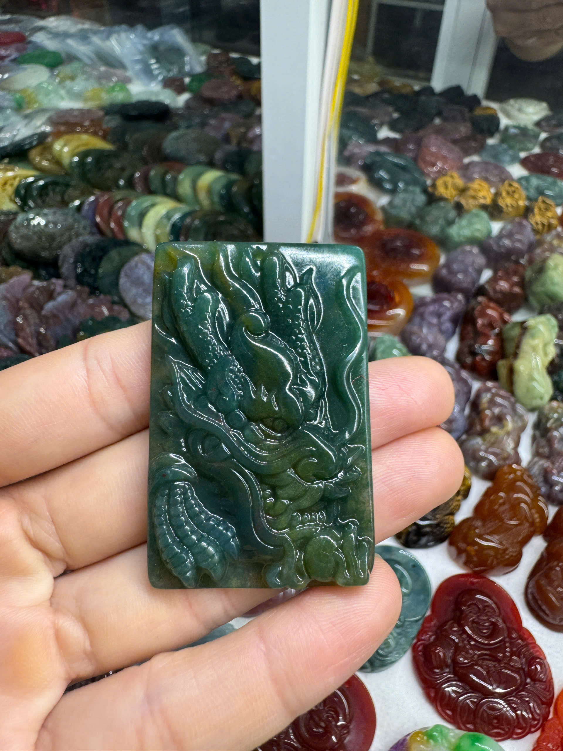 ✨Mặt dây chuyền Rồng phong thủy đá ngọc băng tảo