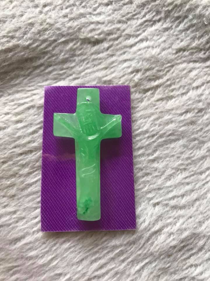 Mặt dây chuyền : hình thánh giá Chúa Giê Su Chất liệu : đá cẩm thạch tự nhiên Màu : xanh lá