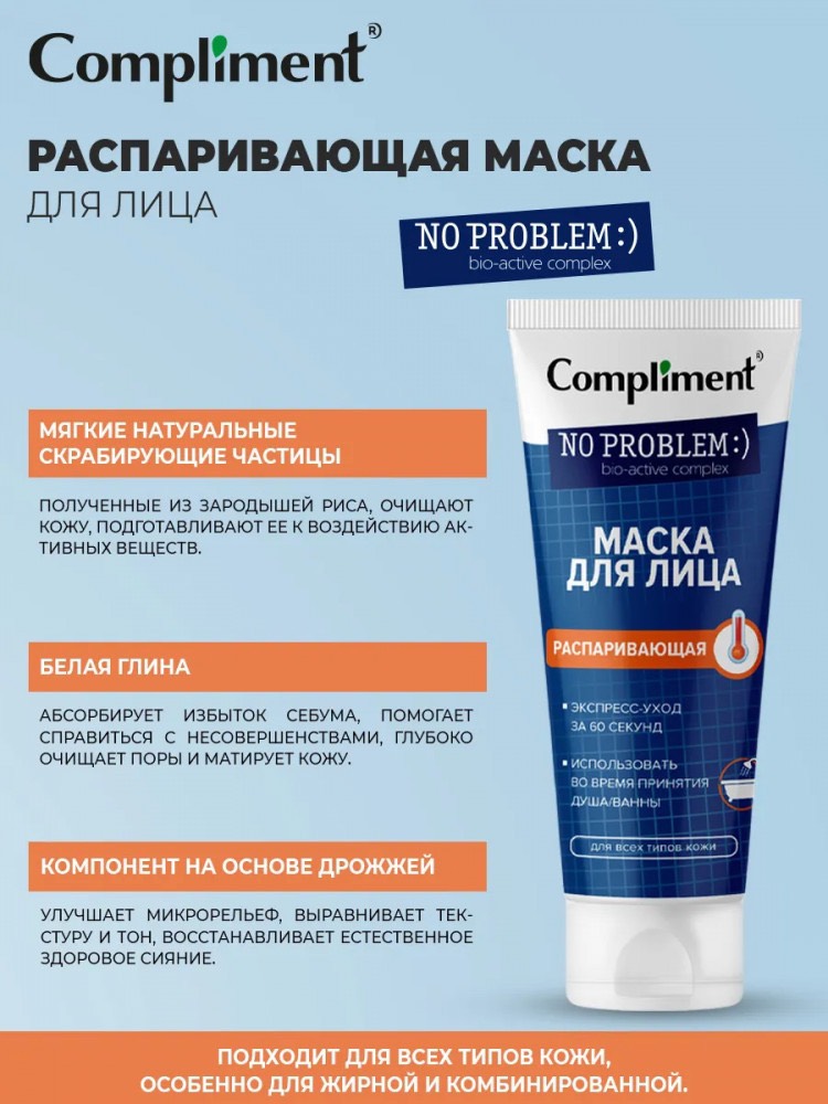 ✨Mặt nạ đất sét xông hơi nóng ấm Compliment No Problem Steaming Face Mask 80ml sạch sâu giảm mụn sáng da
