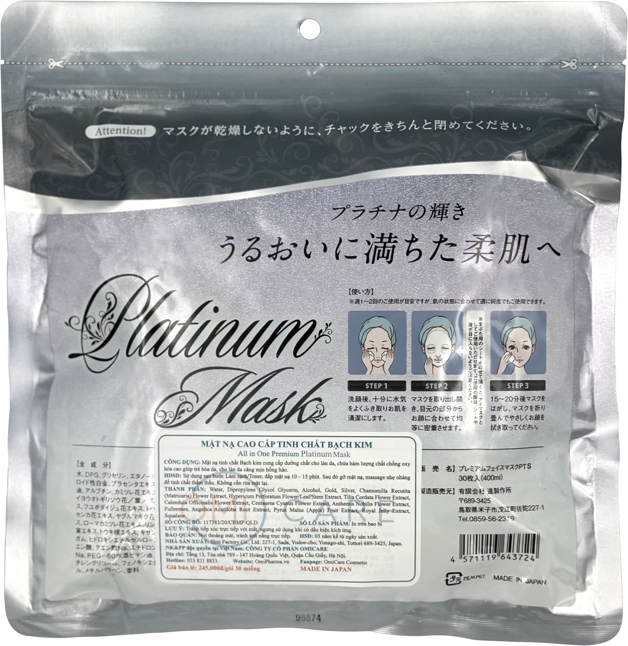 Mặt nạ tinh chất Bạch kim cao cấp cung cấp dưỡng chất cho da, chứa hàm lượng chất chống oxy hóa cao giúp trẻ hóa da, giảm nhăn hiệu quả, giúp làm dịu vùng da mệt mỏi, tăng cường độ đàn hồi, cho làn da căng mịn, hồng hào.