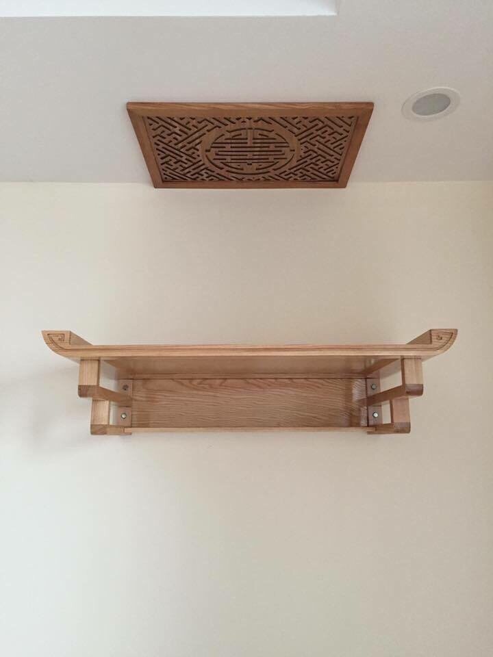 Bàn thờ treo tường chân thang gỗ sồi hiện đại. #banthotreotuong #banthodep