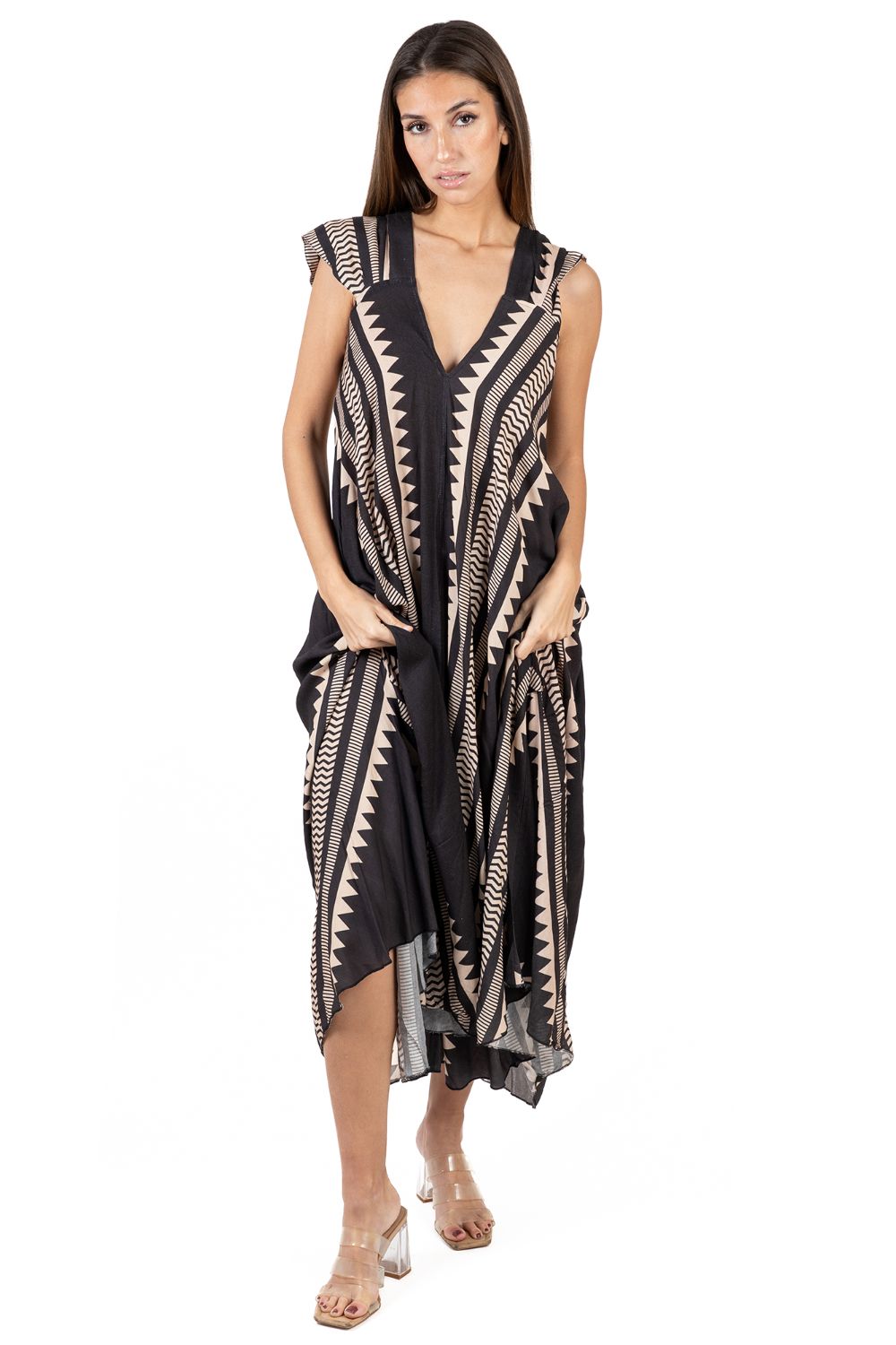 Maxi Boho Cotton Isla Bonita, chất liệu cotton cao cấp, mềm mại. Họa tiết thổ cẩm ấn tượng. Phom xòe rộng. Dài đầm 130cm (45x130) Phù hợp đi biển, dạo phố, công sở, hoặc dự