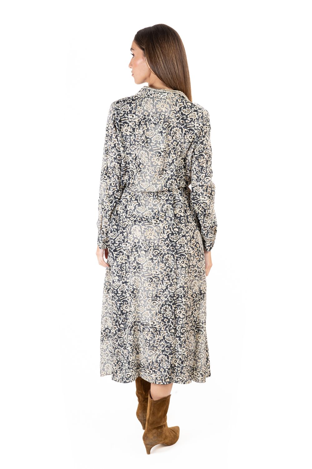 Maxi Sơ Mi Dài Tay Isla Bonita, chất lụa mềm mại, cao cấp. Có dây cột eo. Phom suông. Dài đầm 126cm (45x126)