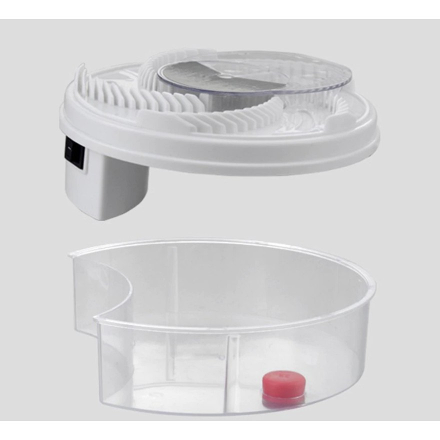 Hướng Dẫn Sử Dụng Máy bắt ruồi tự động B1: Cho mồi nhử ruồi ( sơ mít, thức ăn thừa, mật ong pha nước ...) vào khay tròn lõm trên bề mặt máy B2: Bật công tắc