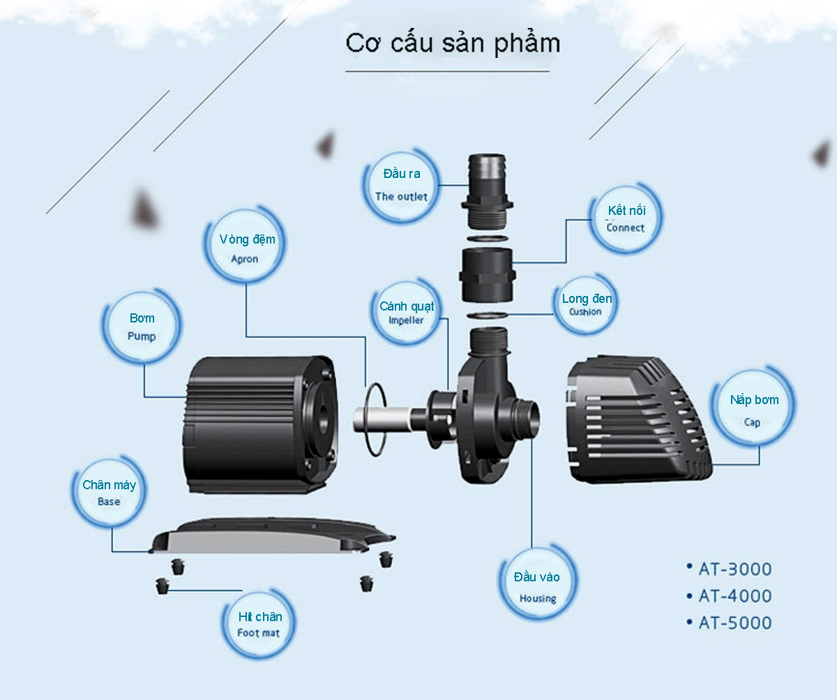 Máy bơm nước ATMAN AT5000 45W, 5000L/Hr lọc nước hồ cá koi, bơm sinh hoạt, tiểu cảnh, đài phun nước cao cấp