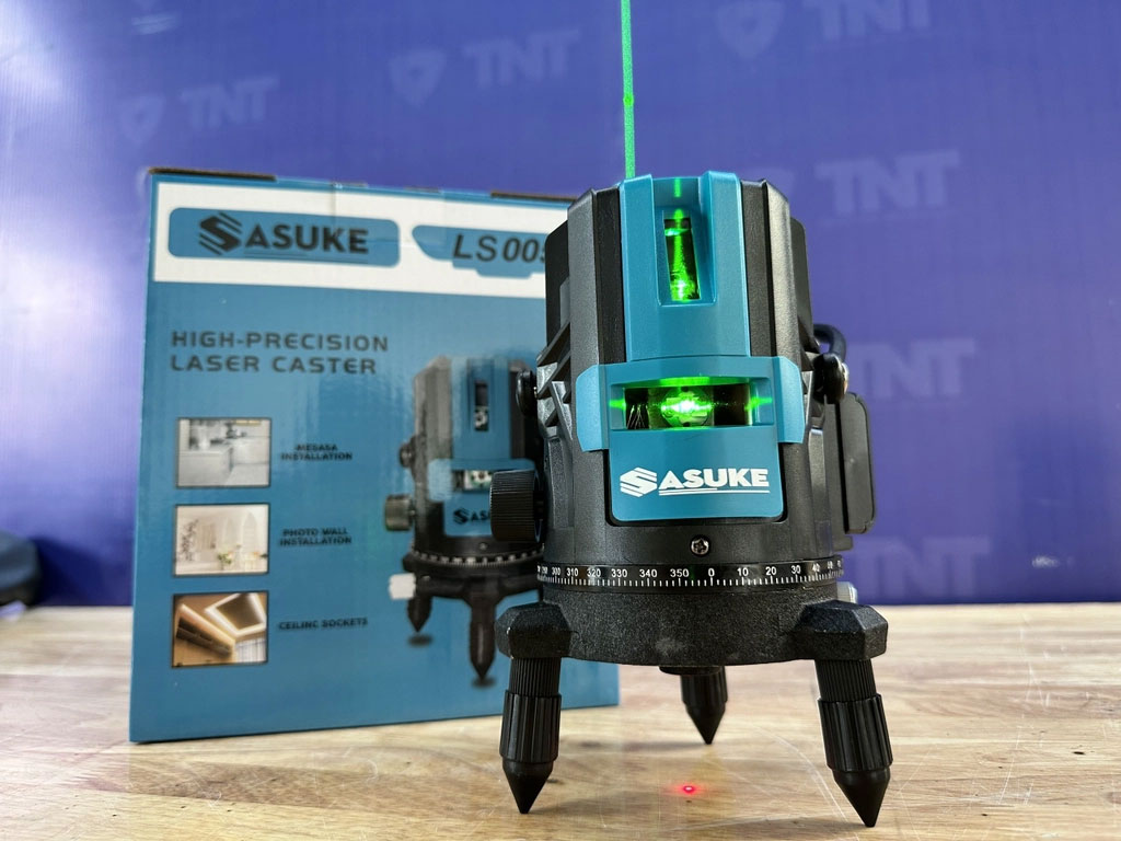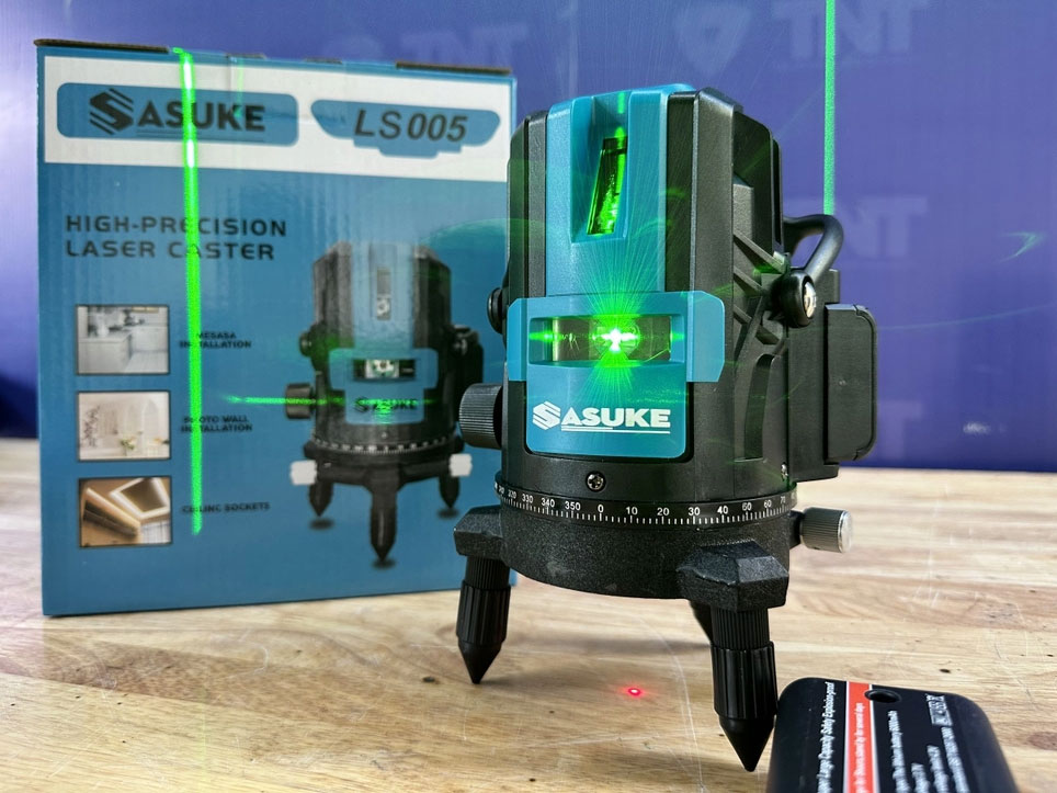Ưu điểm nổi bật của máy cân bằng laser Sasuke LS005 - Máy cân bằng laser sử dụng 5 tia laser màu xanh với độ rộng của tia là 2mm/5mm, có bước sóng laser 635nm nên sử