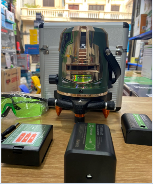 Mua tại TiktokMÁY CÂN BẰNG LASER 5 TIA XANH AKUZA XPORWER Z200 PLUS Thông số kỹ thuật chi tiết Máy cân bằng laser XPOWER Z2000 5 tia xanh Hãng SX: Sản xuất tại Trung Quốc Tia đứng: 4 tia ,Tia nằm: 1 tia, tia rọi tâm: 1 tia Cường độ tia: 7m x 515nm Dung sai tia nằm: ±1mm / 5m Độ chính xác điểm: ±0.5mm / 1.5m Dung sai tia đứng: ±1mm / 5m Trọng lượng: 1,5 Kg (cả pin) Góc phóng: Đường kẻ thẳng đứng ≥110 °, Ngang ≥130 ° Nguồn điện: Pin sạc 4800mAh Môi trường hoạt động : Trong nhà và Ngoài trời Khoảng cách làm việc: Bán kính làm việc trong nhà khoảng: 10m Sử dụng máy dò, bán kính làm việc: 50m Chế độ cân bằng: Tự động bù nghiêng 3° Thiết bị kèm theo máy: 01 máy Xpower Z2000 +01 Sạc + 01 pin sạc + 01 kính mắt + 01 hộp kim loại + 01 dây đeo.