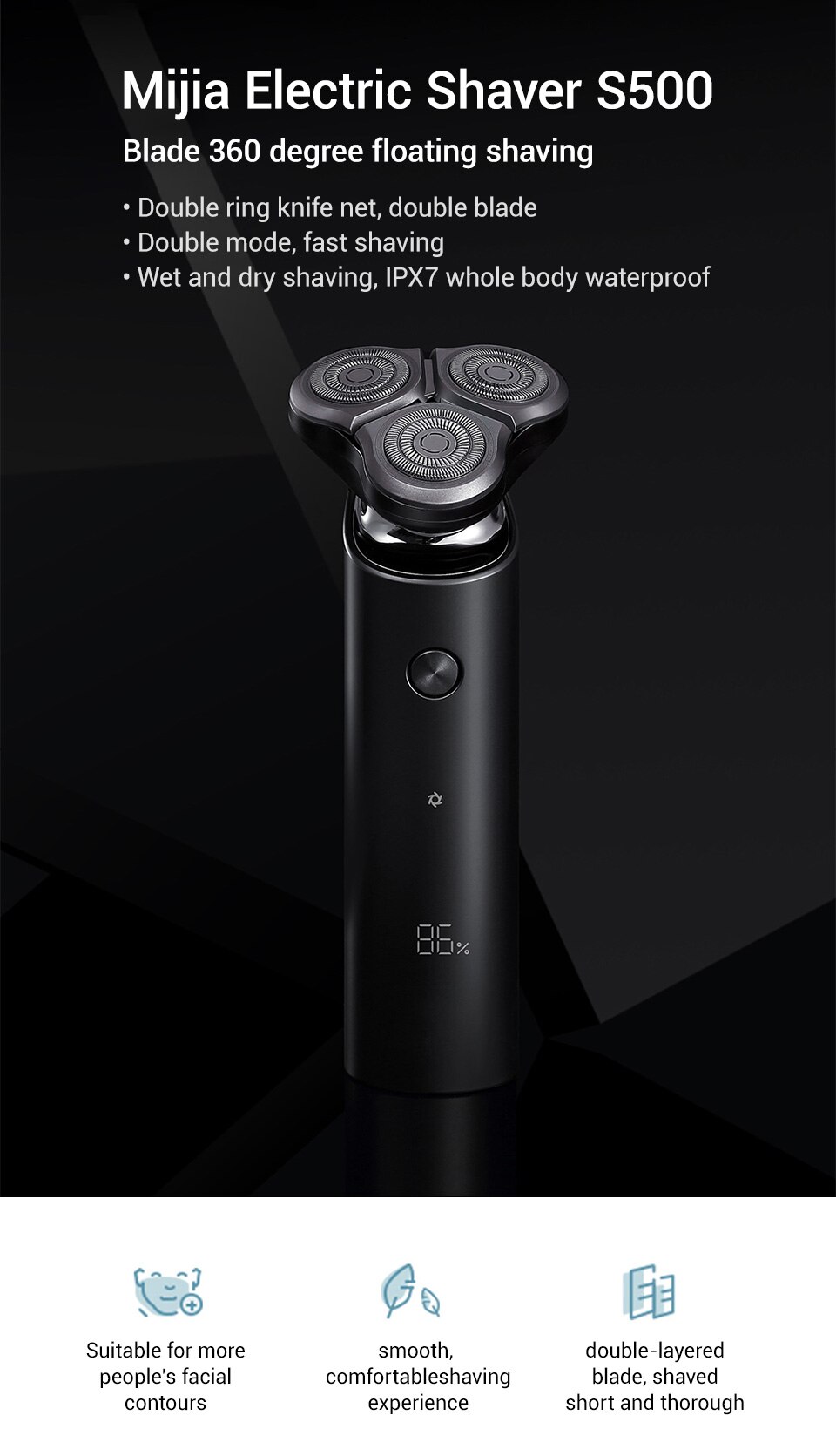 Mua tại TiktokMáy cạo râu Xiaomi Electric Shaver Mijia S500 3 đầu Không thể phủ nhận, trong các đặc điểm khiến một người đàn ông trở nên quyến rũ thì một bộ râu quai nón nam tính hoặc một gương mặt được cạo râu nhẵn nhụi sẽ là thứ “vũ khí sát thương” hữu hiệu nhất dành cho chị em phụ nữ. Thế nhưng không phải chiếc dao cạo râu nào cũng có thể đem đến cho bạn một vẻ ngoài hoàn hảo như mong muốn. Thậm chí đôi khi còn khiến da mặt bị tổn thương hoặc để lại một gương mặt lởm chởm râu gây mất thẩm mỹ. Chính vì lý do đó, bạn cần ngay chiếc Máy cạo râu Xiaomi Electric Shaver Mijia S500 dưới đây để có thể khắc phục ngay vấn đề trên. Thông số sản phẩm Máy cạo râu Electric Shaver Mijia Xiaomi