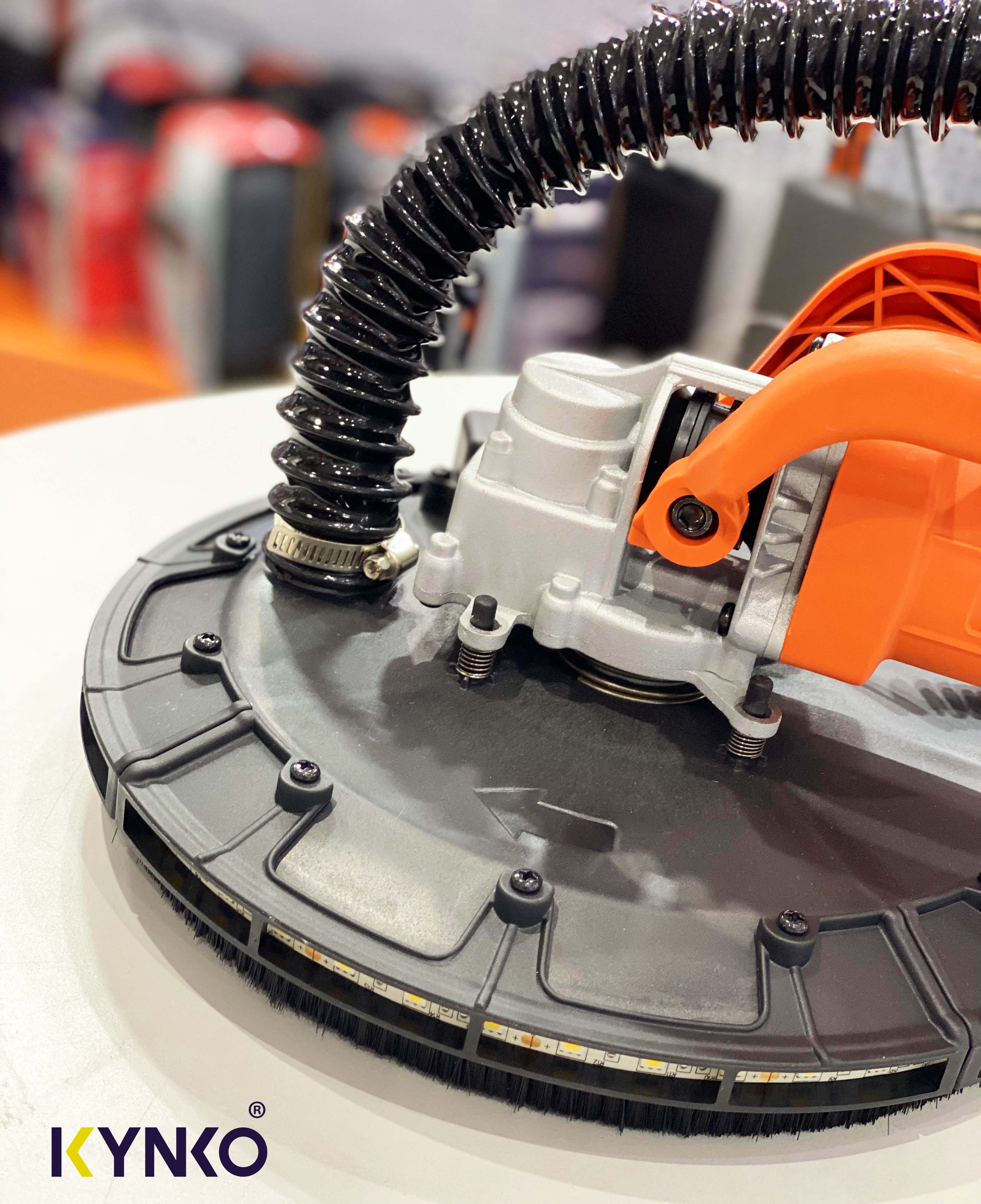Ngoài ra, may cha tuong Kynko còn được trang bị đèn LED xung quanh tấm chụp đĩa mài. Tính năng này giúp cho thợ có thể làm việc trong điều kiện thiếu ánh sáng. Nhờ đèn LED có thể đánh giá được độ phẳng của bề mặt tường sau khi được chà. Máy cũng được trang bị chiết áp điều chỉnh tốc độ quay của đĩa chà. Người thợ có thể điều chỉnh phù hợp với thói quen, loại giấy nhám, chất liệu bề mặt chà, chất lượng sau khi chà.