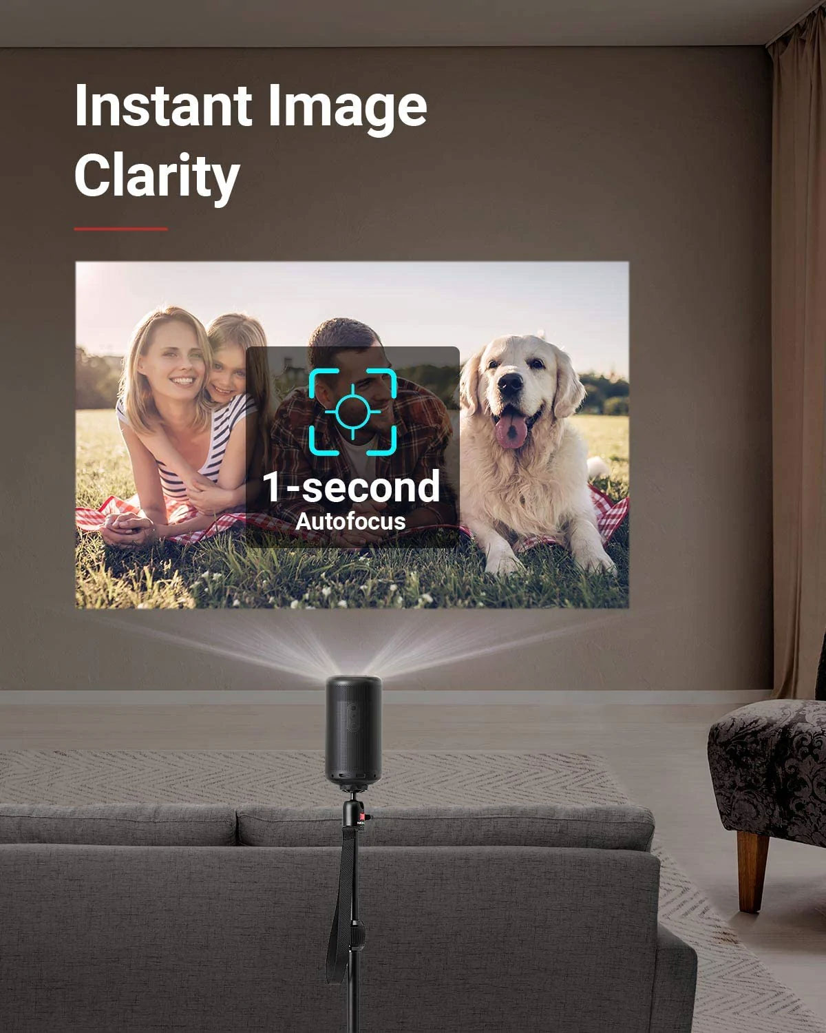 - Độ rõ nét tức thì: Có được hình ảnh siêu nét, hình chữ nhật từ hầu hết mọi góc độ với phím bấm của máy chiếu Capsule Max mini và công nghệ lấy nét tự động trong một giây