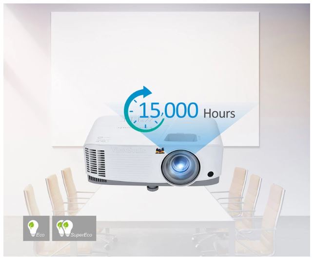 Điểm độc đáo của máy chiếu này là chế độ SuperEco, giúp tiết kiệm năng lượng và gia tăng tuổi thọ đèn lên đến 15.000 giờ. Điều này không chỉ làm giảm tiêu thụ điện năng mà còn làm cho quá trình sử dụng máy chiếu trở nên hiệu quả và tiết kiệm chi phí. Cho dù bạn đang thuyết trình hay giảng dạy, ViewSonic PA503XB là sự lựa chọn hoàn hảo để đảm bảo thông điệp của bạn được truyền đạt một cách rõ ràng và ấn tượng.