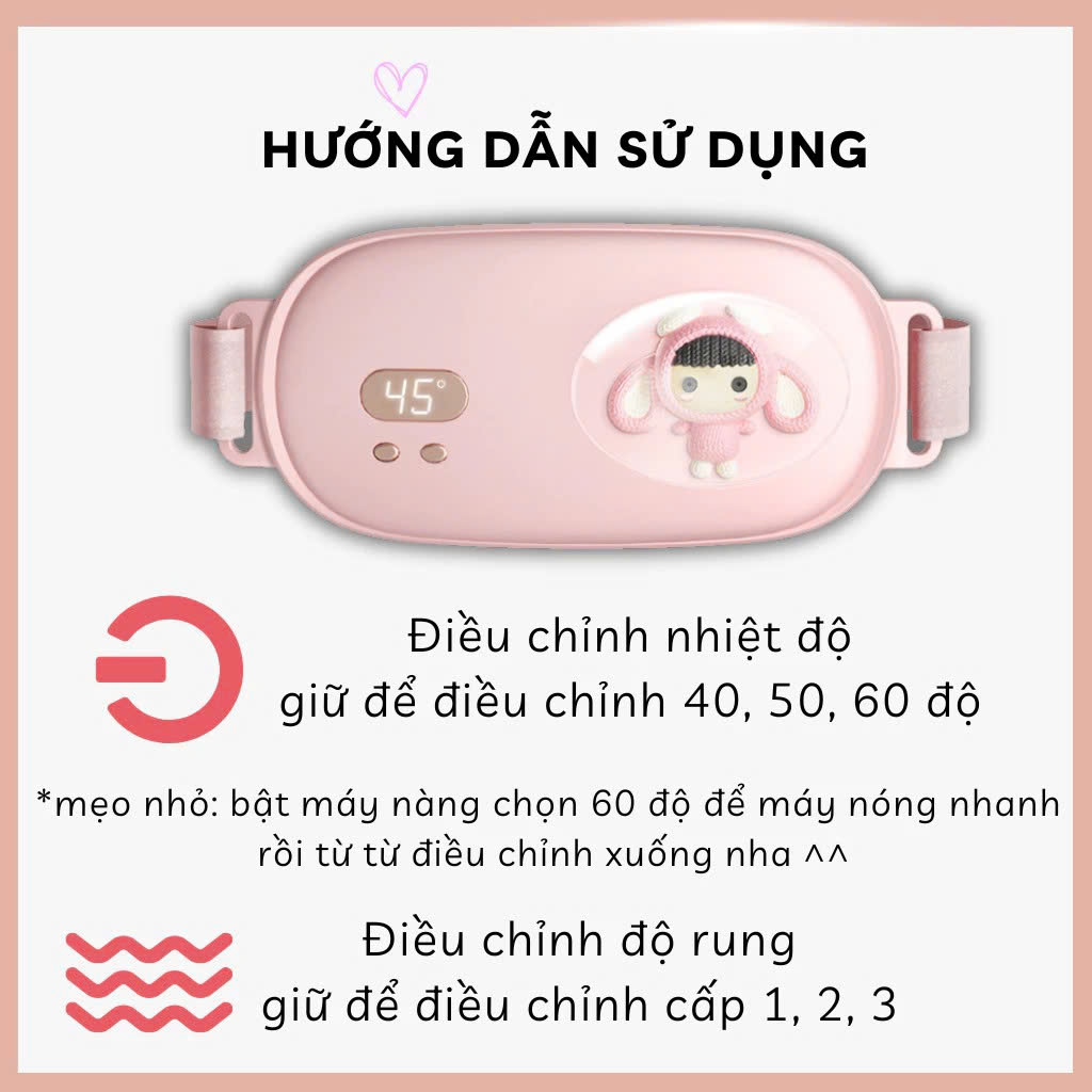 Máy massage làm ấm bụng, giảm đau bụng đau lưng cho phụ nữ đến Kì, Đai đeo chườm nóng giảm đau bụng kinh nguyệt cho bạn gái. Bảo hành 6 tháng Đai massag làm ấm