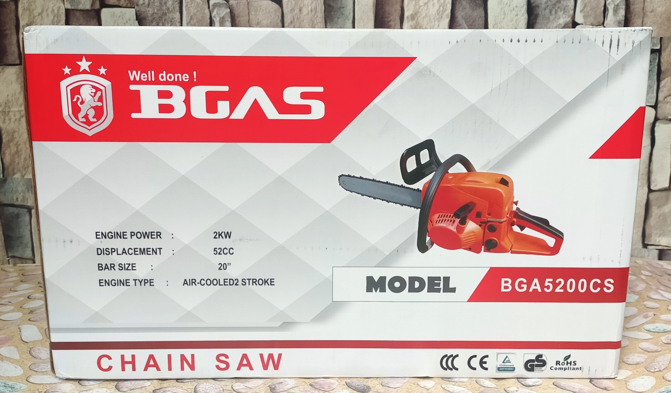 -Máy cưa gỗ Bgas BGA5200CS sử dụng động cơ 2 thì với công suất 2.000W vô cùng khỏe, tốc độ vòng quay nhanh đạt 7.000 vòng/phút giúp công việc của người thợ mộc, kiểm lâ hoàn thành nhanh chóng, không tốn sức