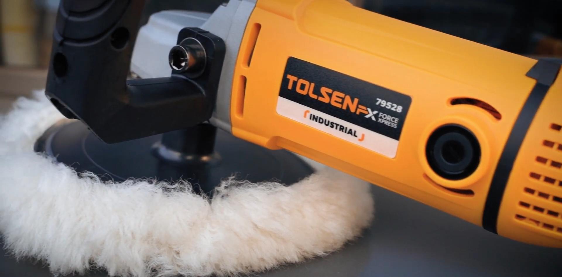 Thông số kĩ thuật -Mã sản phẩm: 79528 -Thương hiệu: TOLSEN -Xuất xứ: Trung Quốc -Công suất đầu vào: 1400W -Điện áp định mức: 220-240V -Tần số: 50 / 60Hz -Tốc độ không tải: 1000-3300r / phút, Tốc độ thay đổi -Đường kính đệm đánh bóng: 180mm -Chủ đề trục chính: M14 -Hộp số nhôm bền -Pad đánh bóng 1pc -1pc đánh bóng nắp ca-pô -1pc hex key -1 cặp bàn chải carbon -Đóng gói: hộp màu