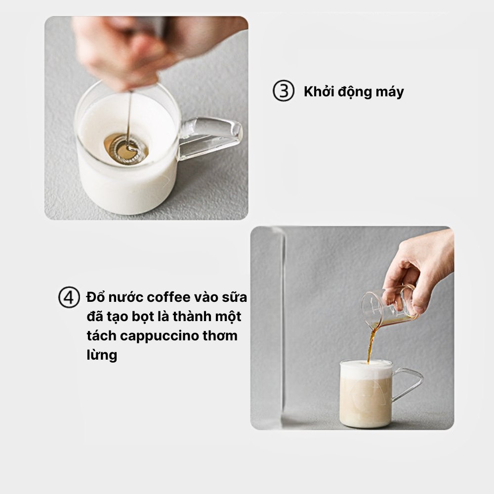 - Tiện lợi với hai đầu tạo bọt, đánh trứng để bạn có thể thay đổi linh hoạt.